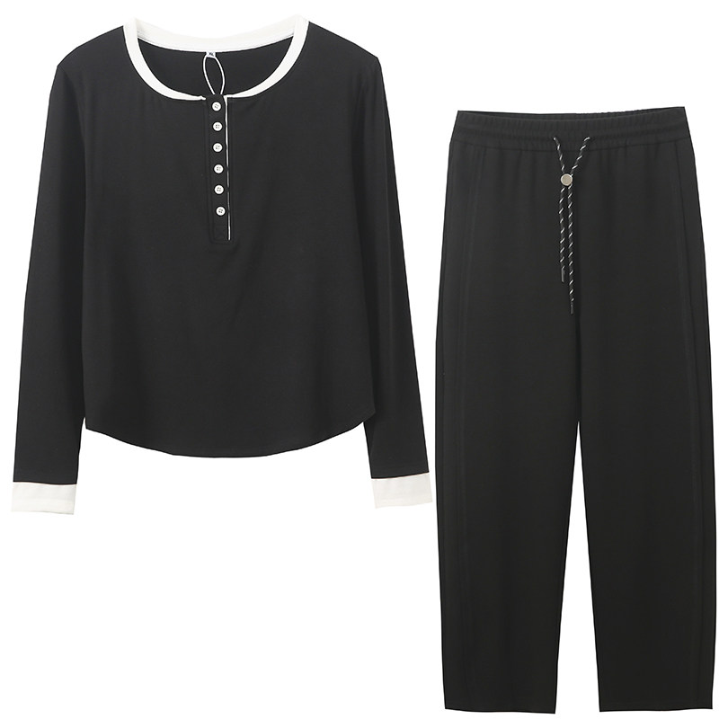 休闲拼色显瘦上衣垂感阔腿裤套装
