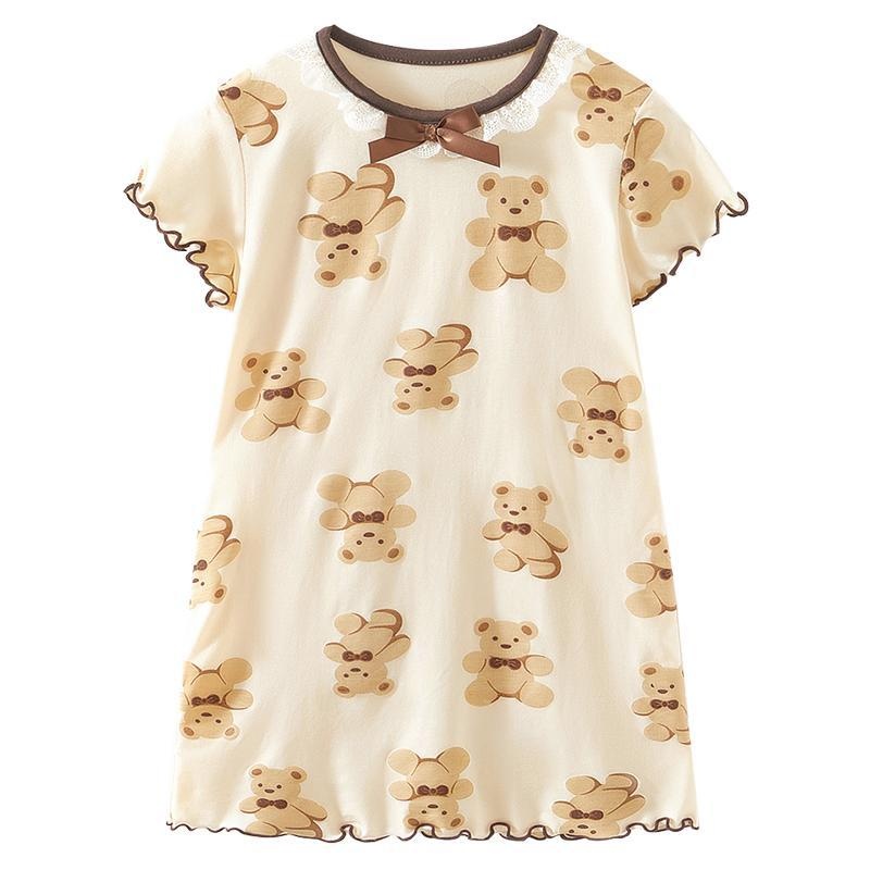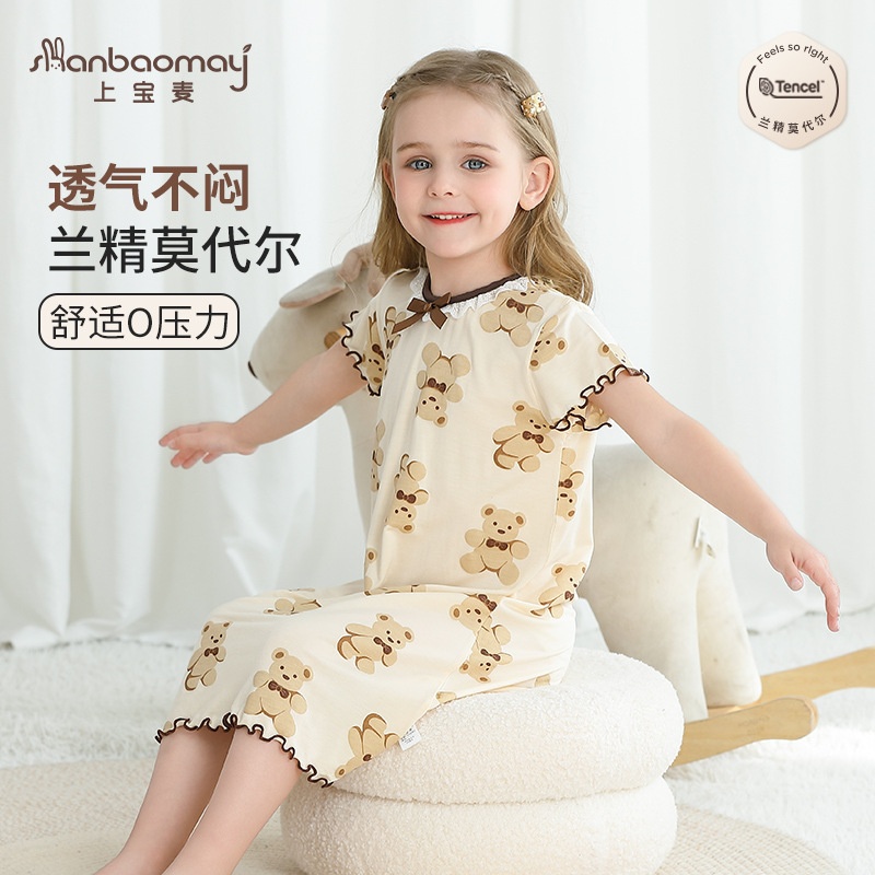 上宝麦夏儿童睡裙短袖莫代尔凉感排汗女童睡衣女孩睡裙家居服