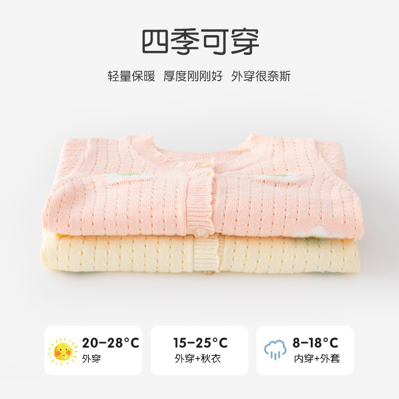 女童针织开衫外搭薄款春秋宝宝披肩上衣打底衫婴儿毛衣外套镂空