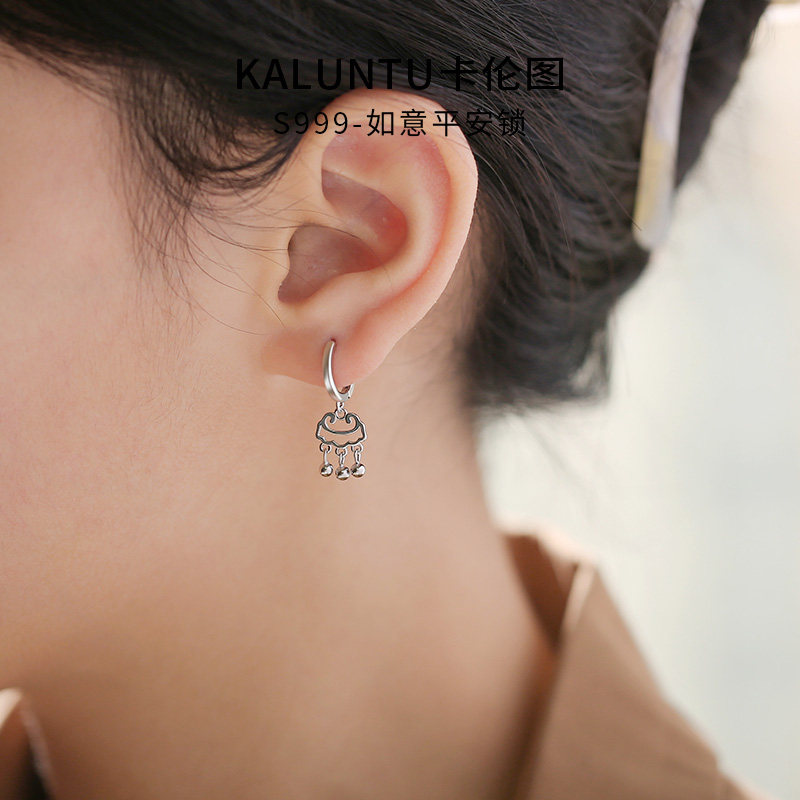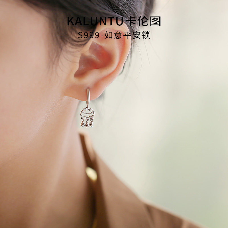 卡伦图S999纯银如意长命锁耳环