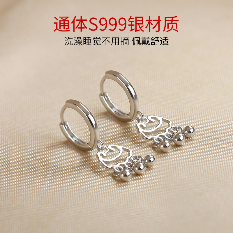 卡伦图999纯银耳环女平安锁耳扣新中式民族风如意长命锁足银耳饰
