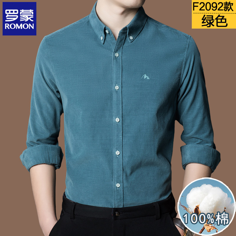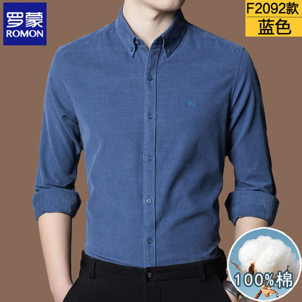 罗蒙正品100%纯棉长袖衬衫男秋冬季牛津纺休闲加绒高端衬衣男中年