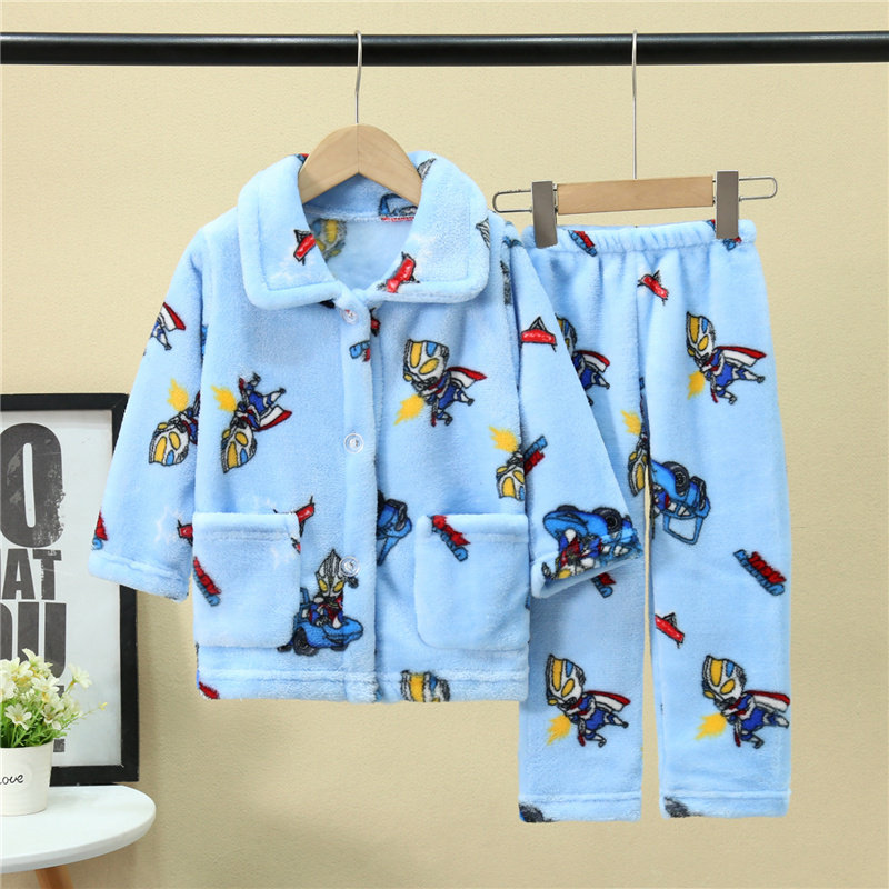春秋冬款儿童睡衣法兰绒宝宝套装男女孩卡通中大童家居服可外穿