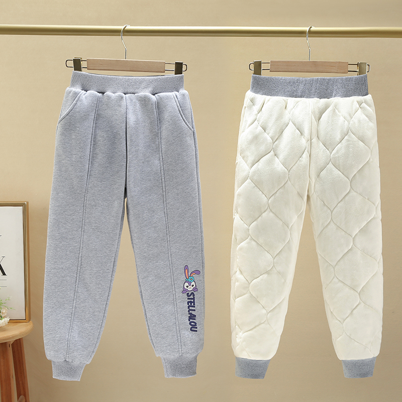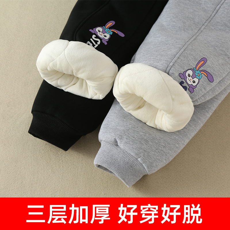 女童加绒加厚棉裤三层保暖