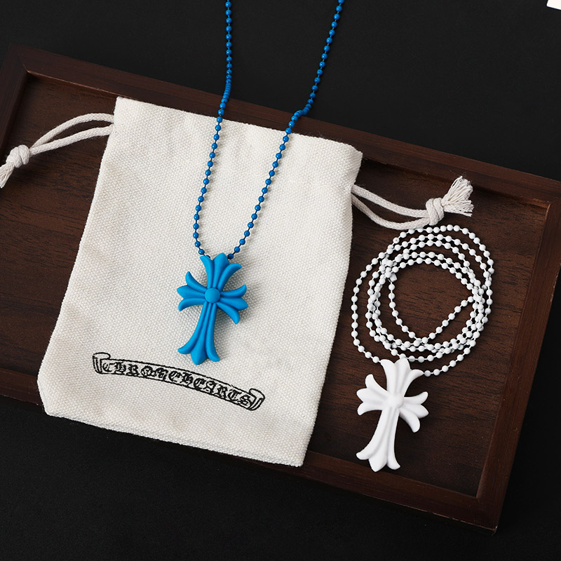 时尚潮流百搭K罗心彩色树脂CH十字架项链青山限定明星款气质ins