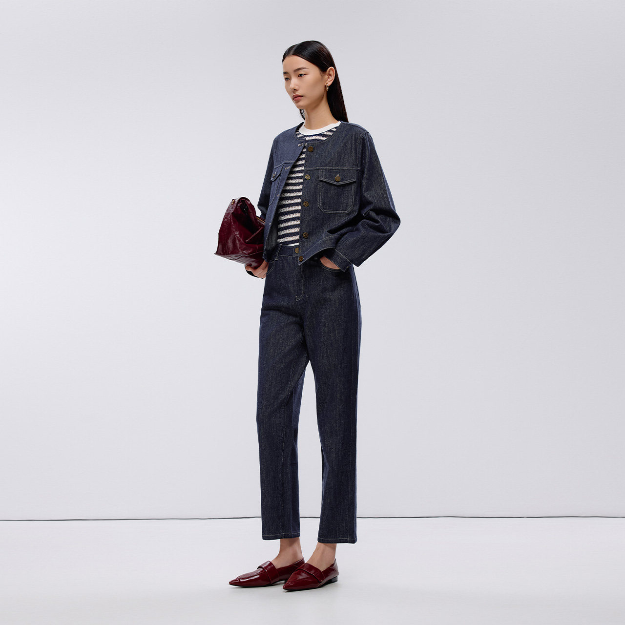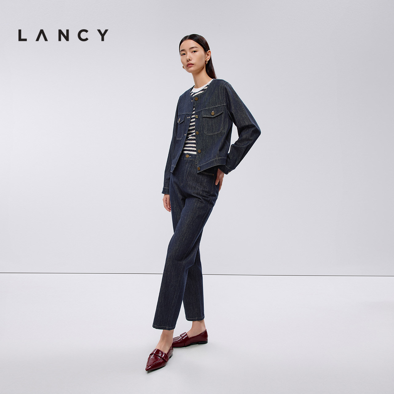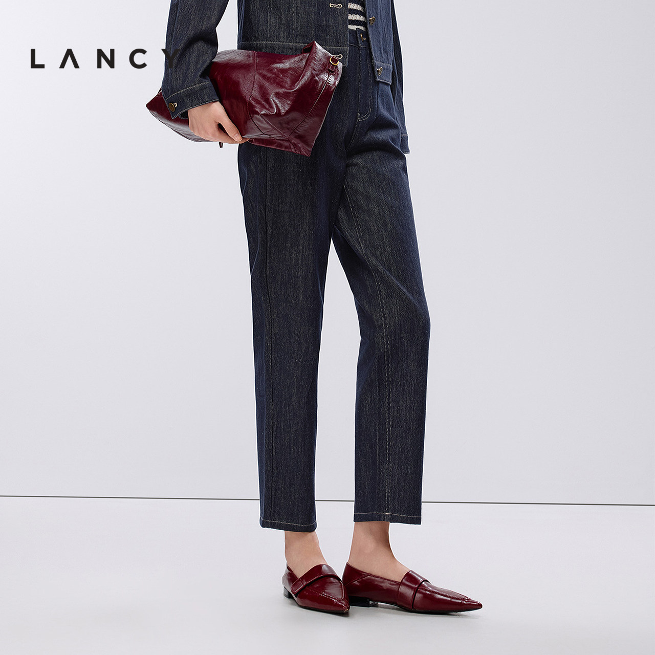 LANCY/朗姿2025春新款高级感宽松直筒阔腿裤气质通勤休闲牛仔裤女