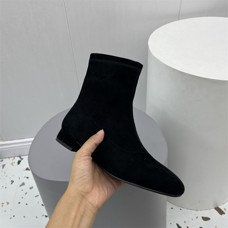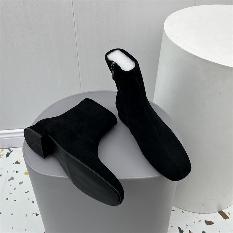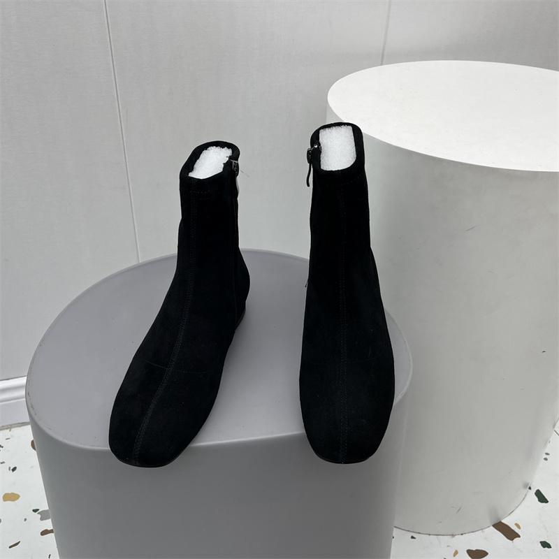 品牌撤柜真皮鞋子女2022年新款秋羊反绒短靴侧拉链方头加棉马丁靴