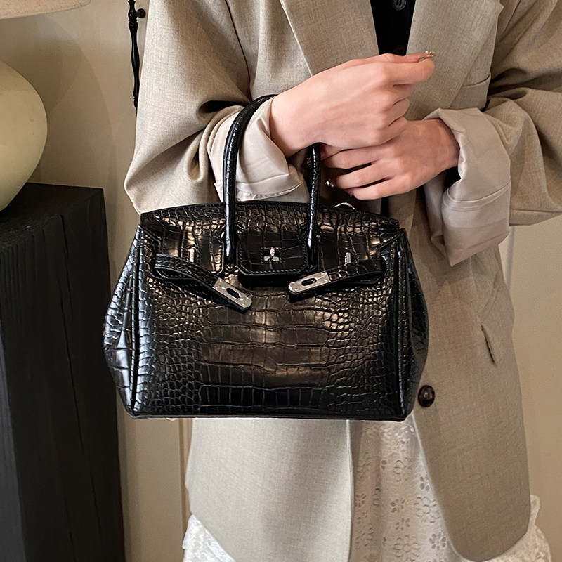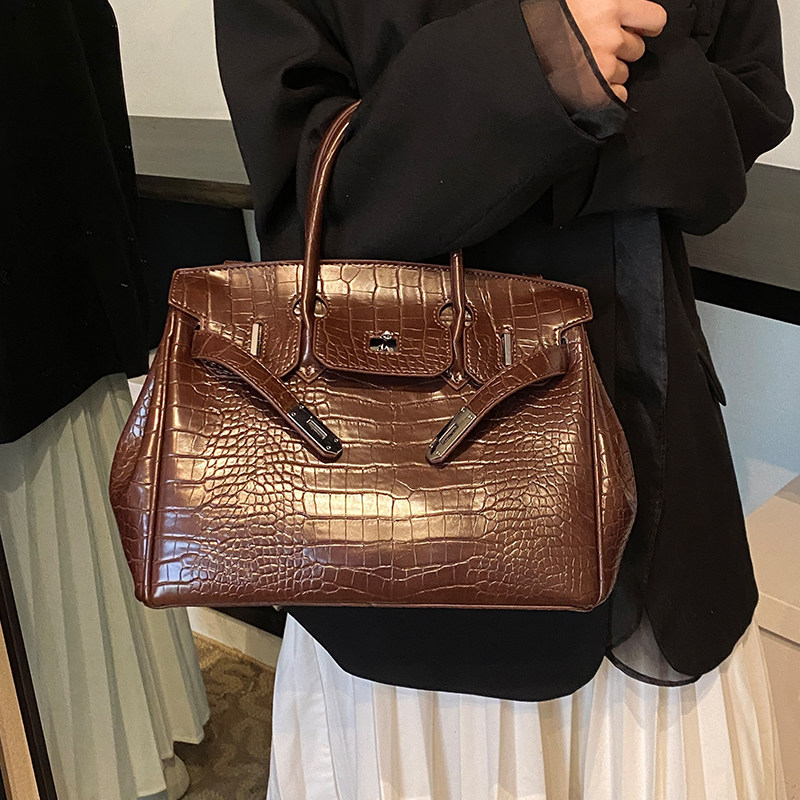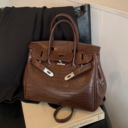 复古高级感石头纹凯莉包2025冬季新款小众潮流时尚单肩包百搭女包