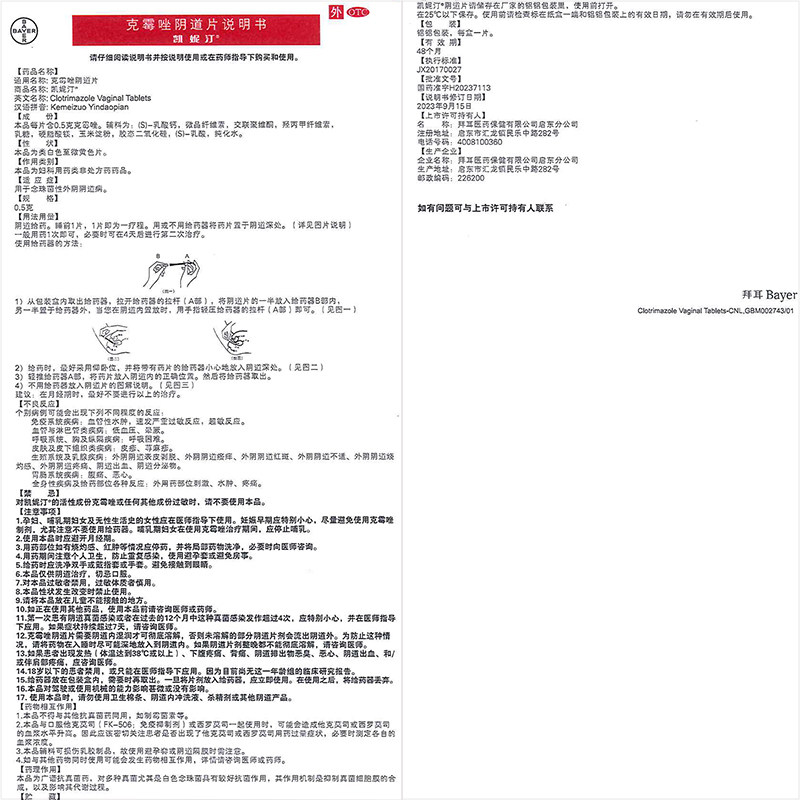 凯妮汀克霉唑阴道片canesten旗舰店正品用药阴道炎霉菌性妇科炎症