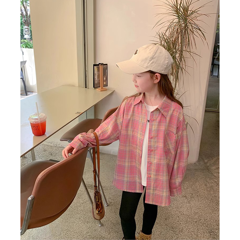 女童格子衬衫外套春秋款2025新款秋季衬衣儿童薄款秋装小女孩上衣