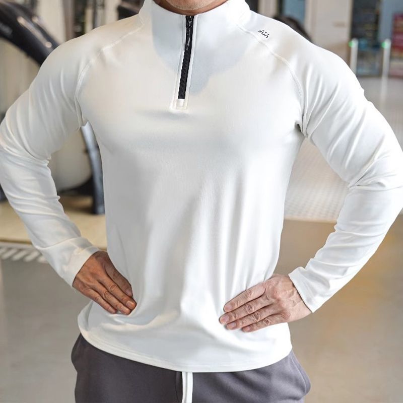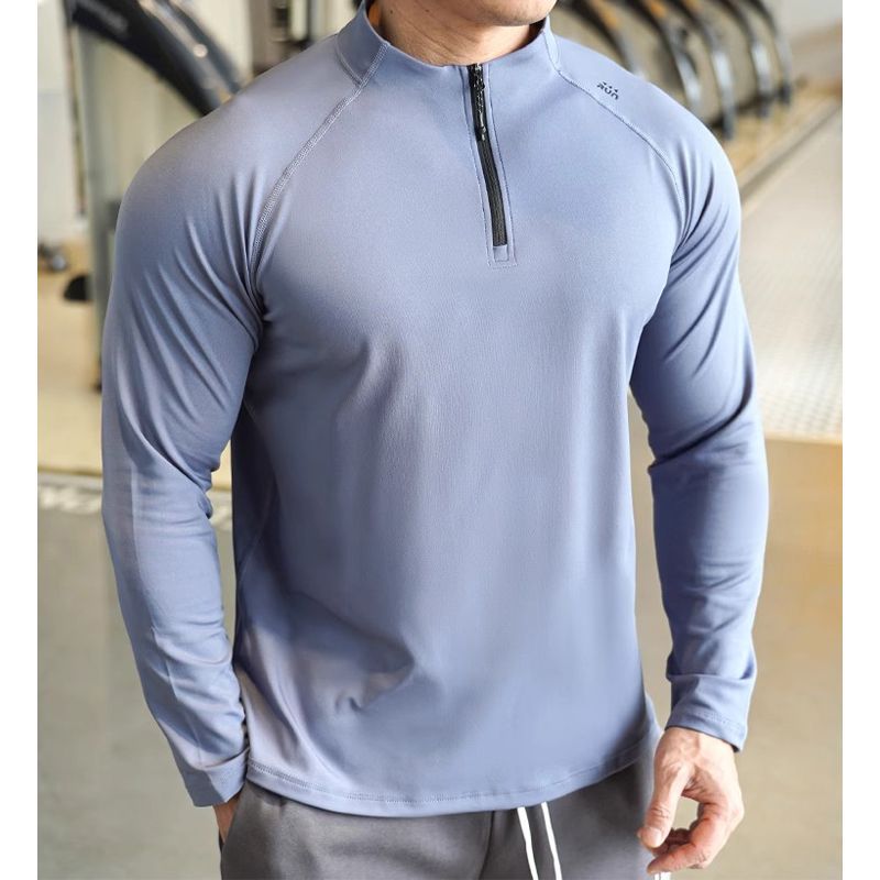 加大码300斤运动健身训练服男女装春季跑步减肥长袖t恤半拉链上衣