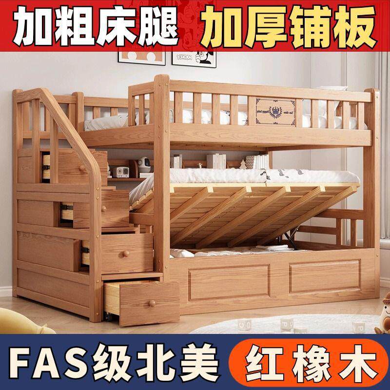 FAS级红橡木实木加粗加厚双人床二层上下铺床儿童床上下床高低床