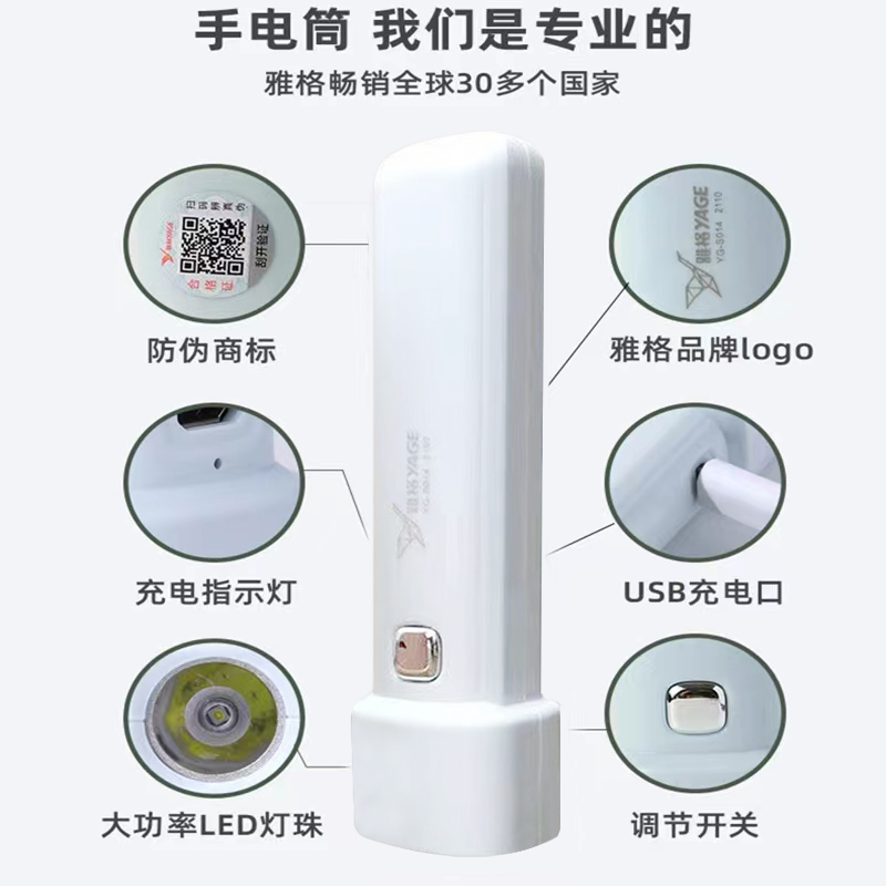 雅格LED手电筒家用强光户外照明可充电式超亮迷你便携小儿童学生
