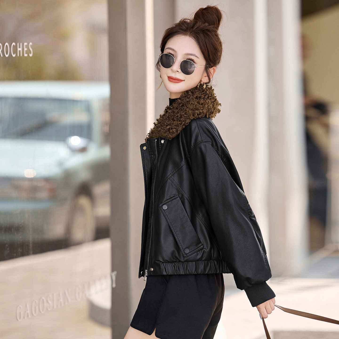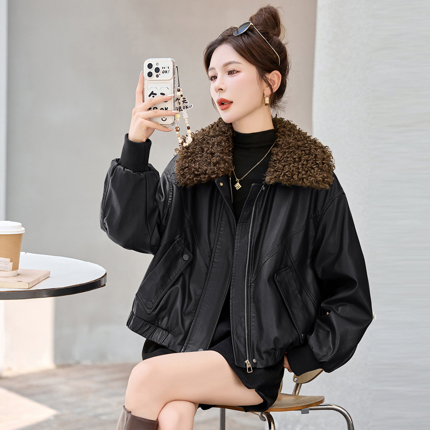 海宁皮毛一体大码皮衣外套女爆款