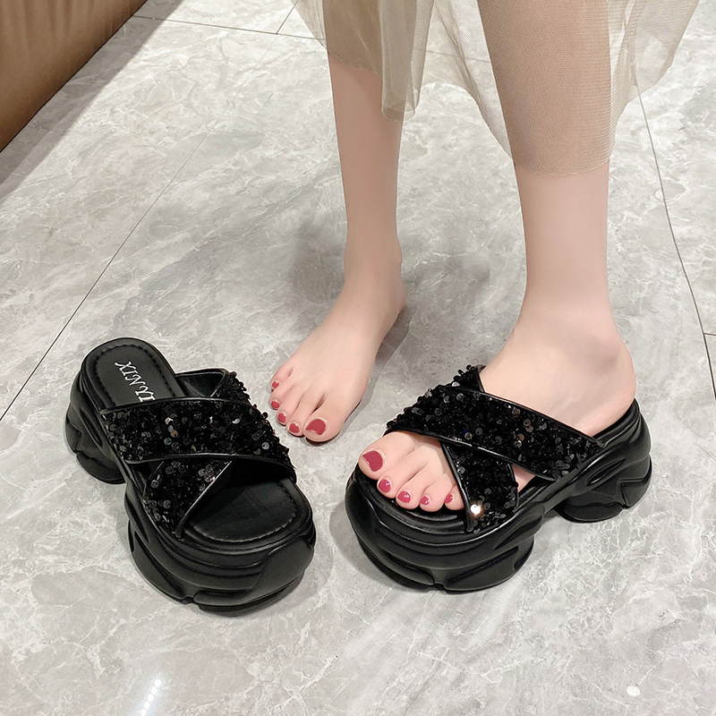 聚氨酯松糕底时尚百搭水钻拖鞋