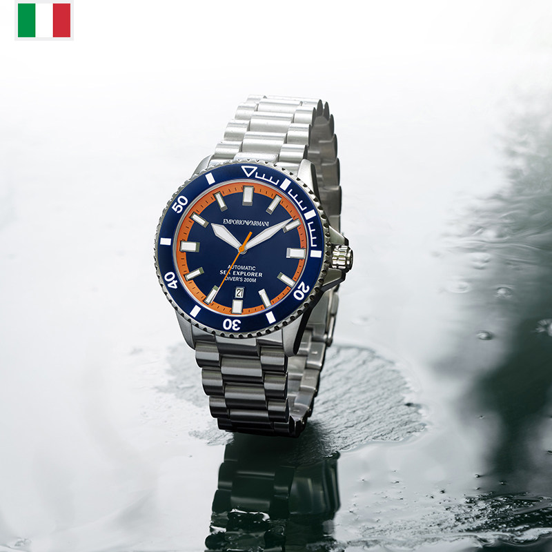 【自营】Armani阿玛尼机械手表男橙蓝水鬼夜光运动潜水表AR60090