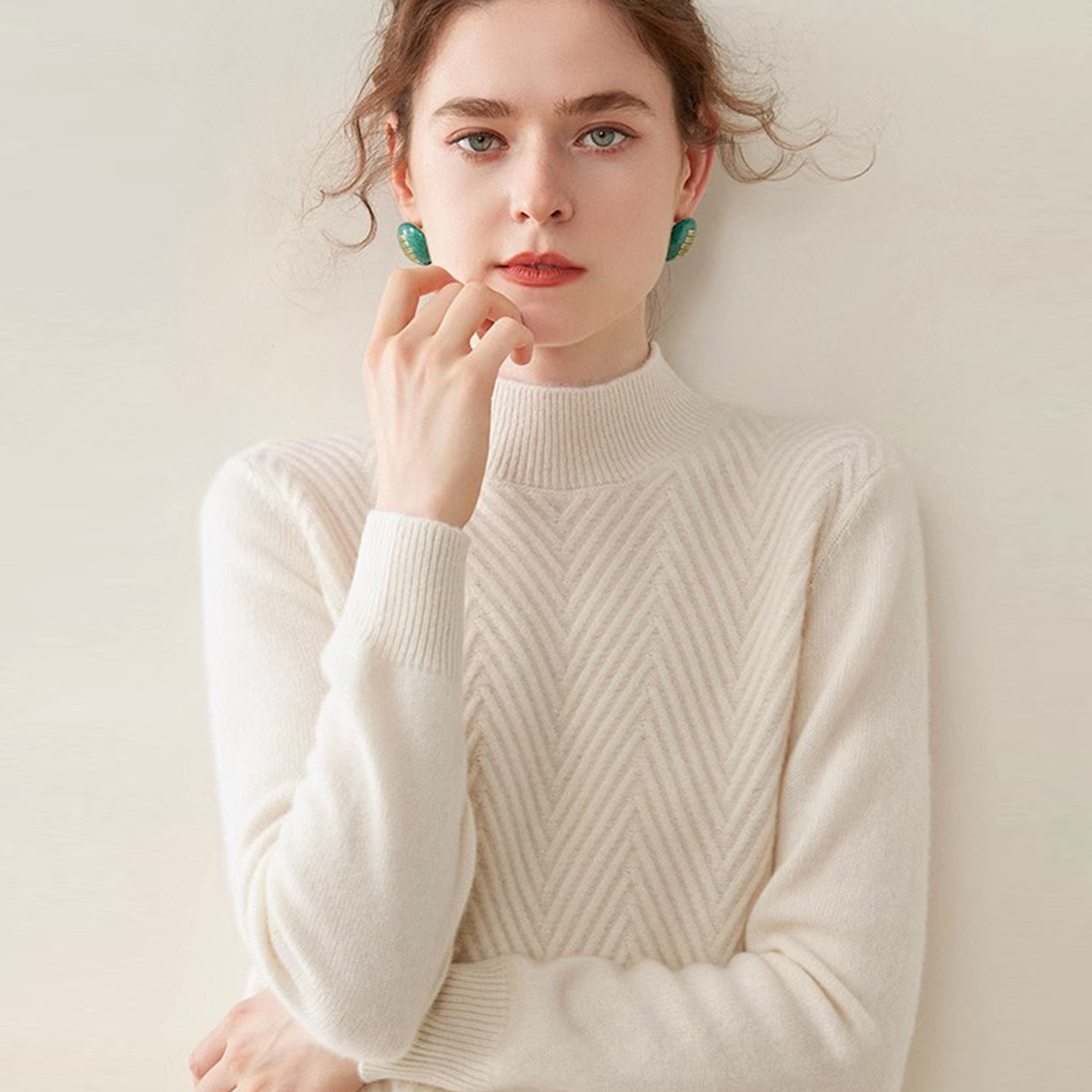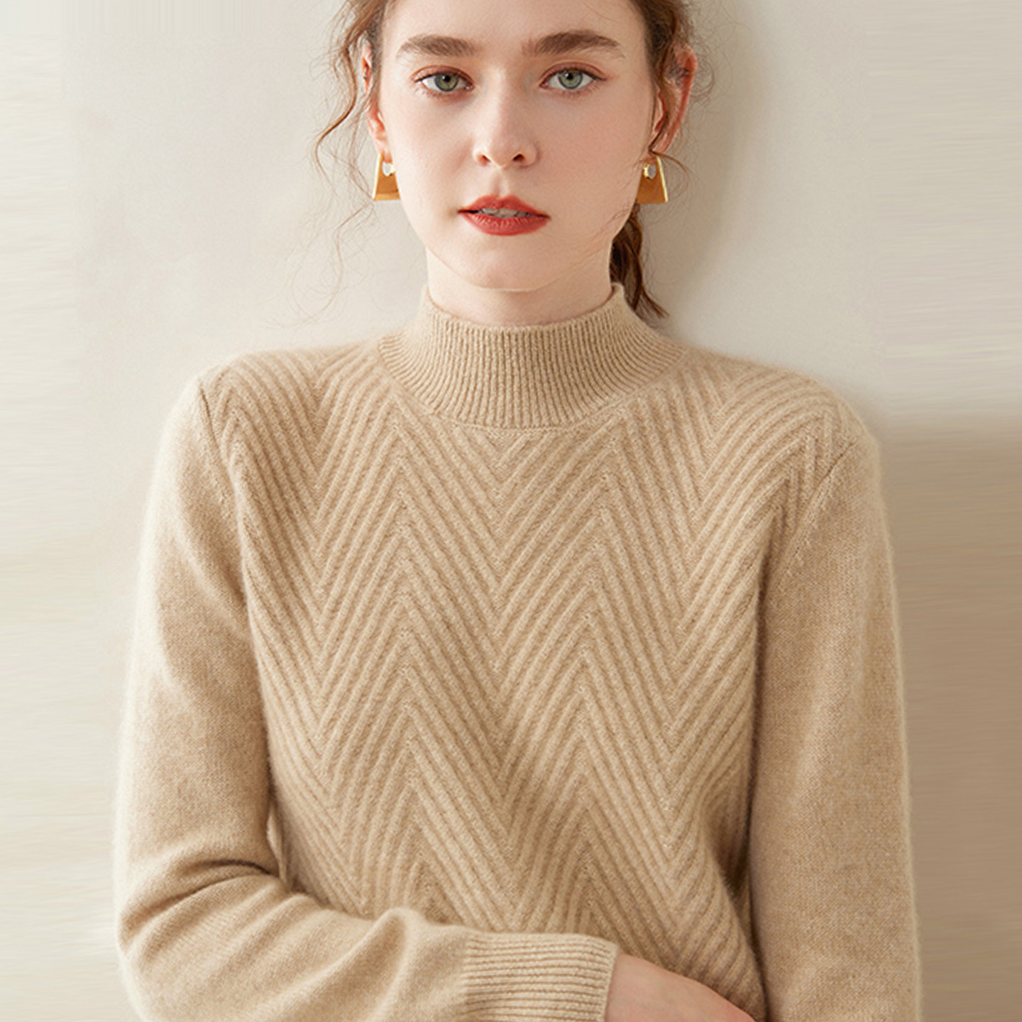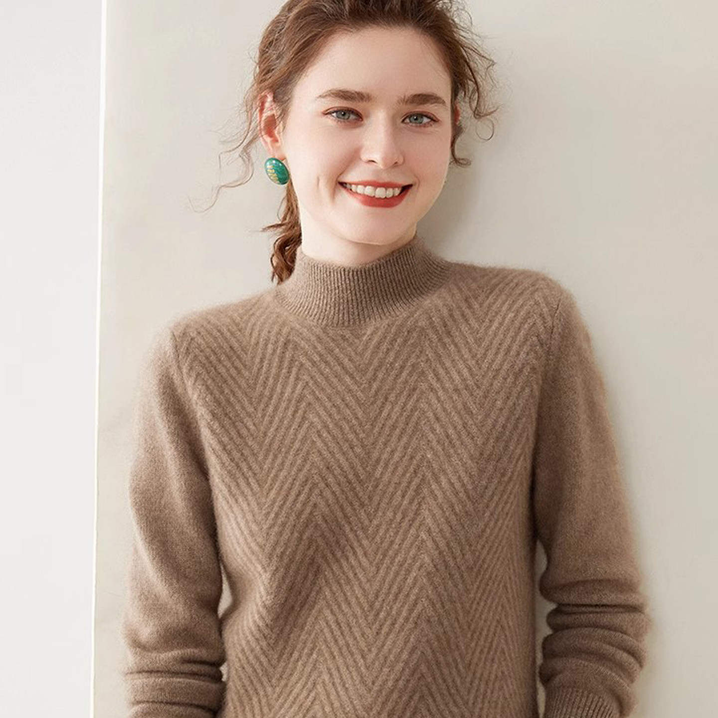 半高领羊绒衫女100纯山羊绒毛衣