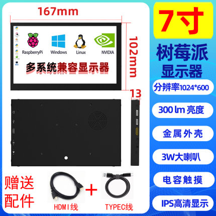 树莓派显示屏庐山派7寸3B4B5BIPS高清多点触控免驱喇叭亮度调节屏