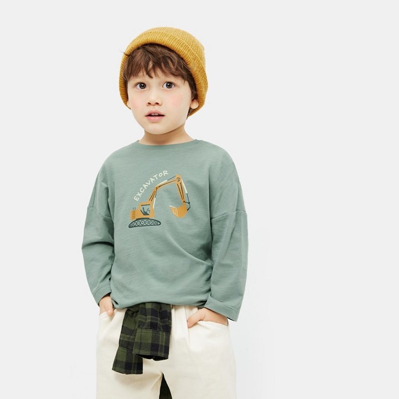 男童春夏纯棉长袖T恤中大童宽松休闲竹节圆领秋上衣儿童外贸童装a