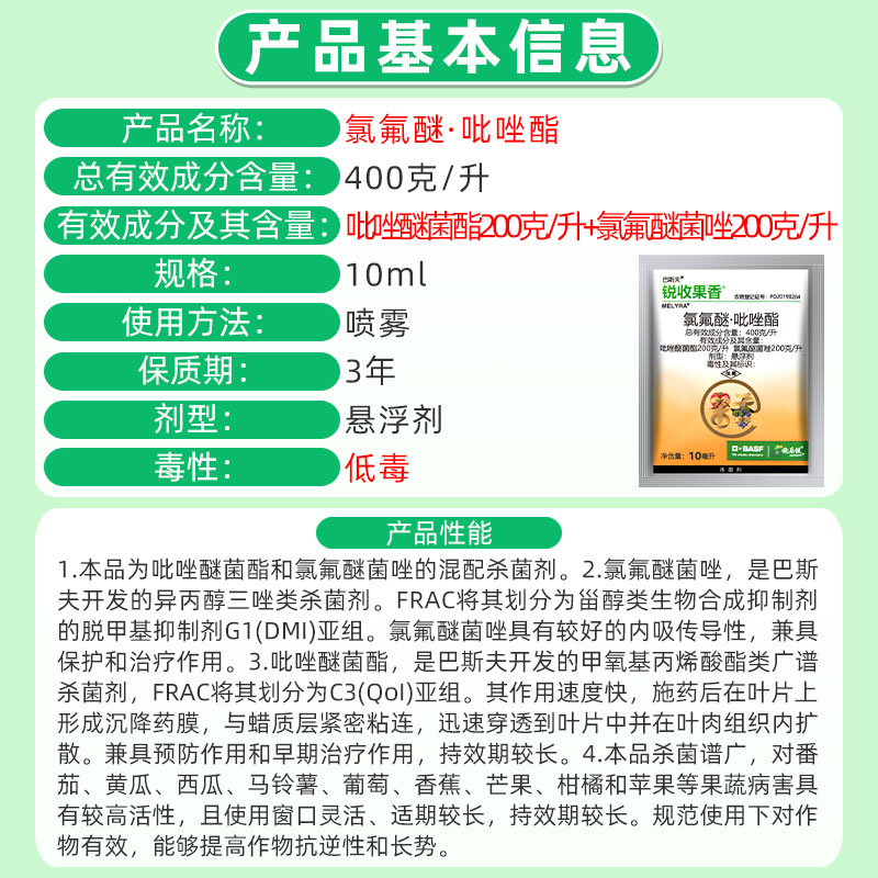 巴斯夫锐收果香40%氯氟醚·吡唑酯白粉病炭疽病早疫叶斑病杀菌剂