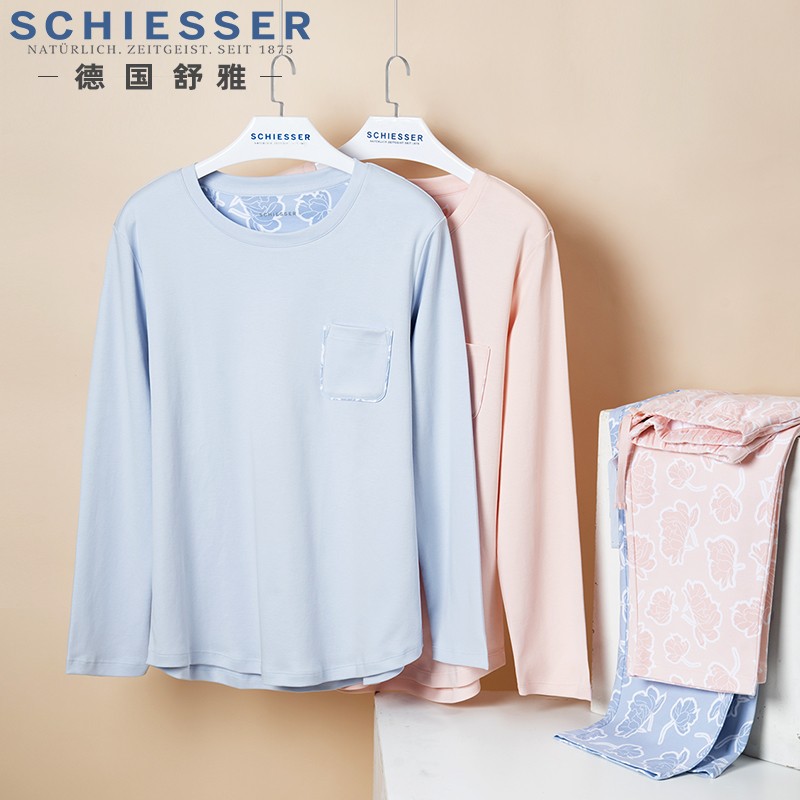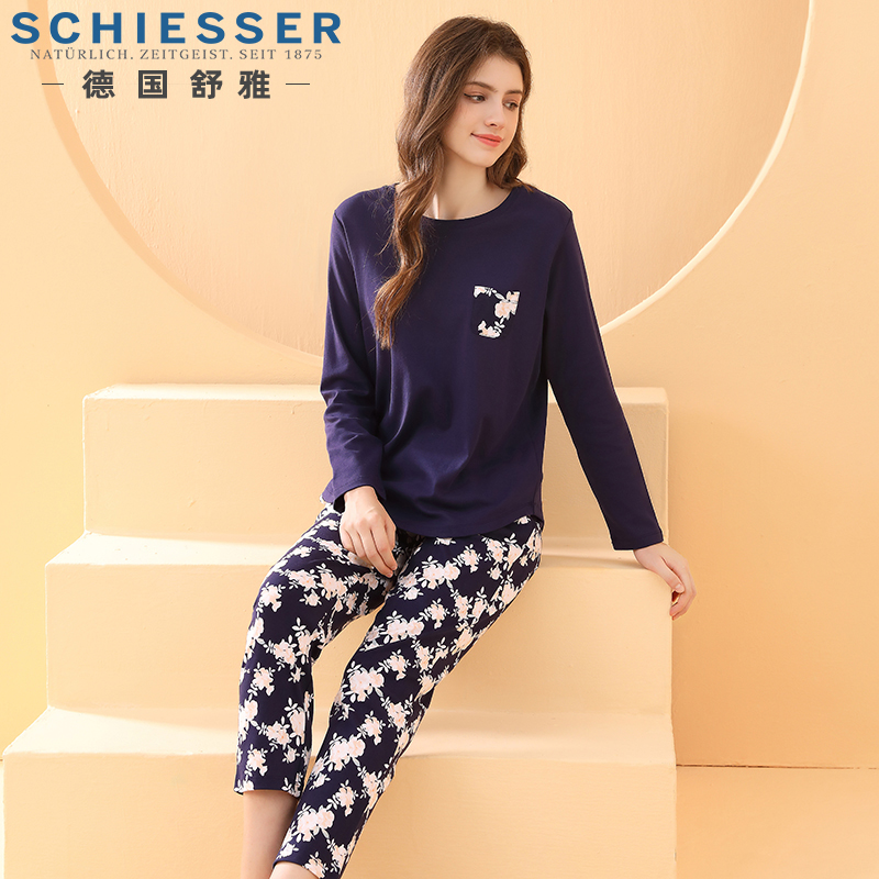 舒雅女士睡衣纯棉秋冬款高级感透气长袖长裤家居服套装可外穿