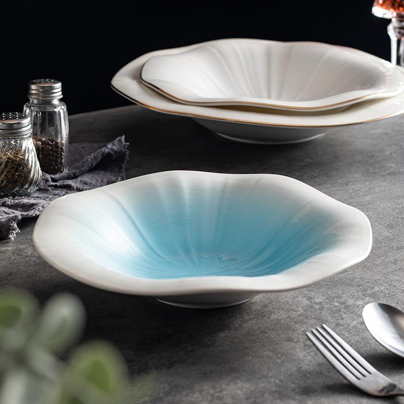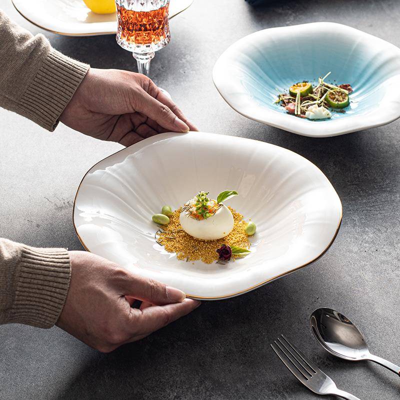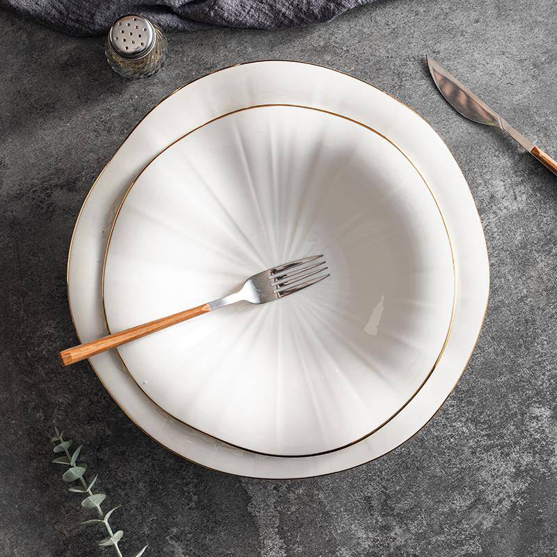 盘子陶瓷菜盘家用汤盘深盘装菜碟餐盘商用创意感简约圆盘金边