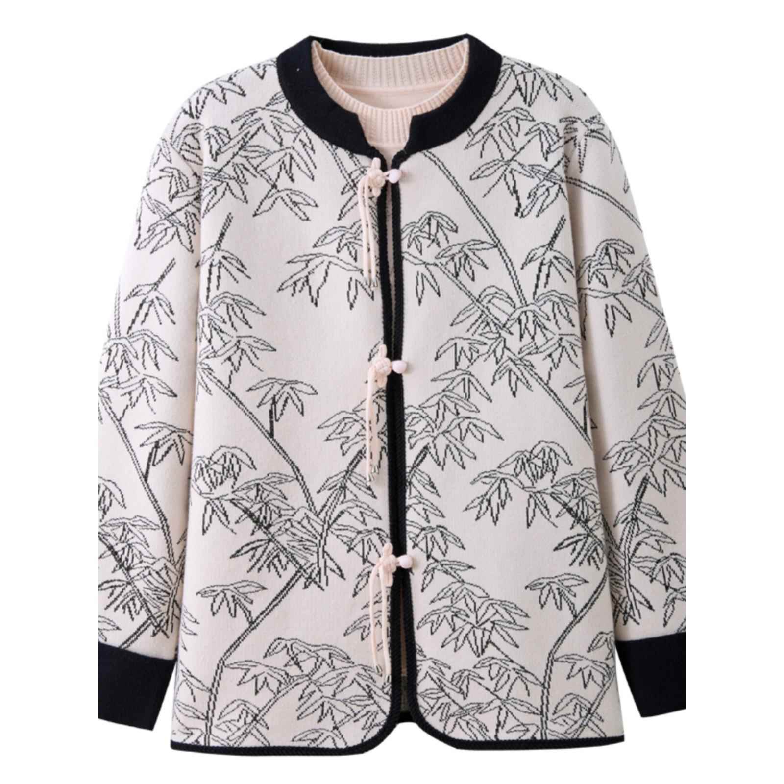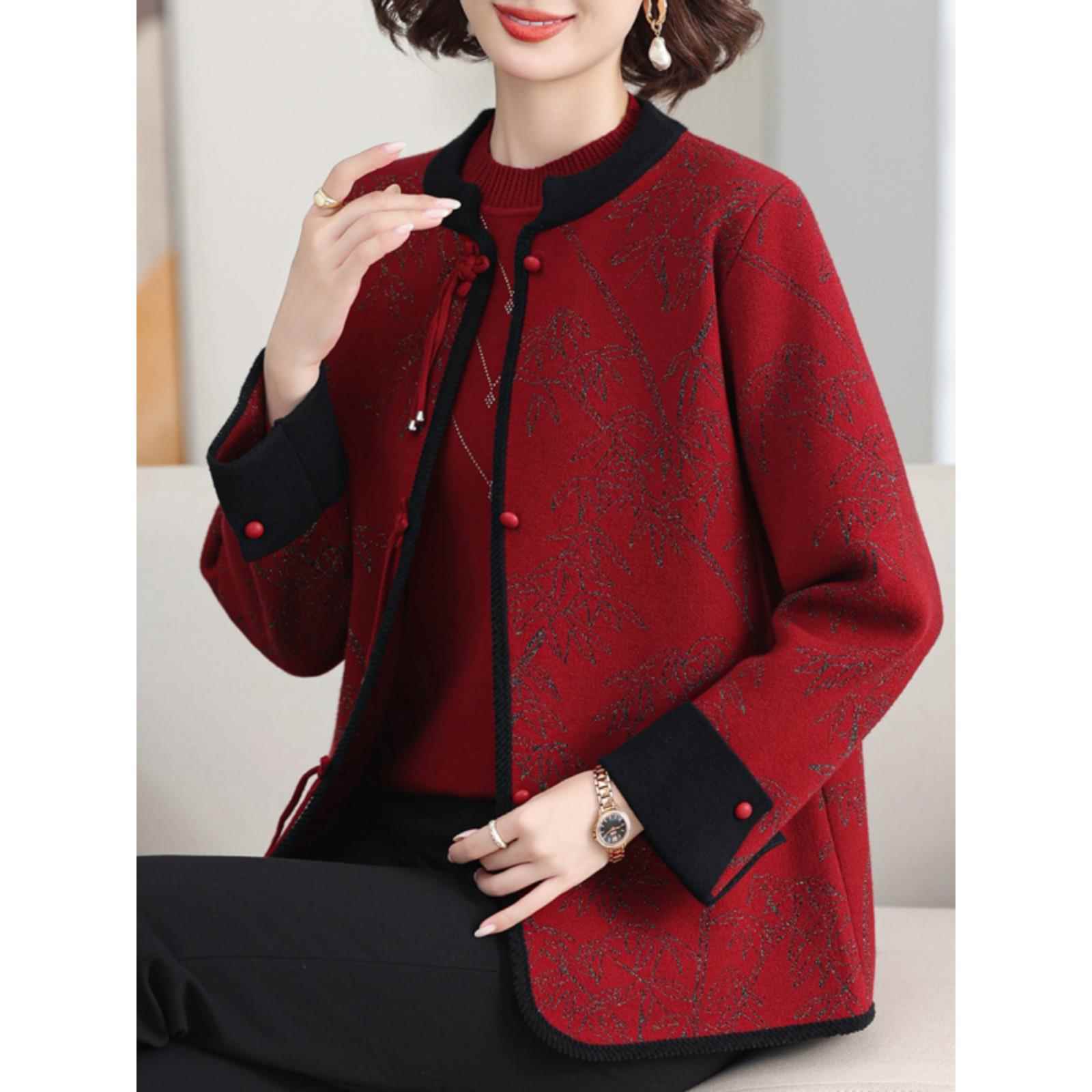 中老年妈妈新中式国风洋气秋冬外套加肥加大码女装两件套针织开衫