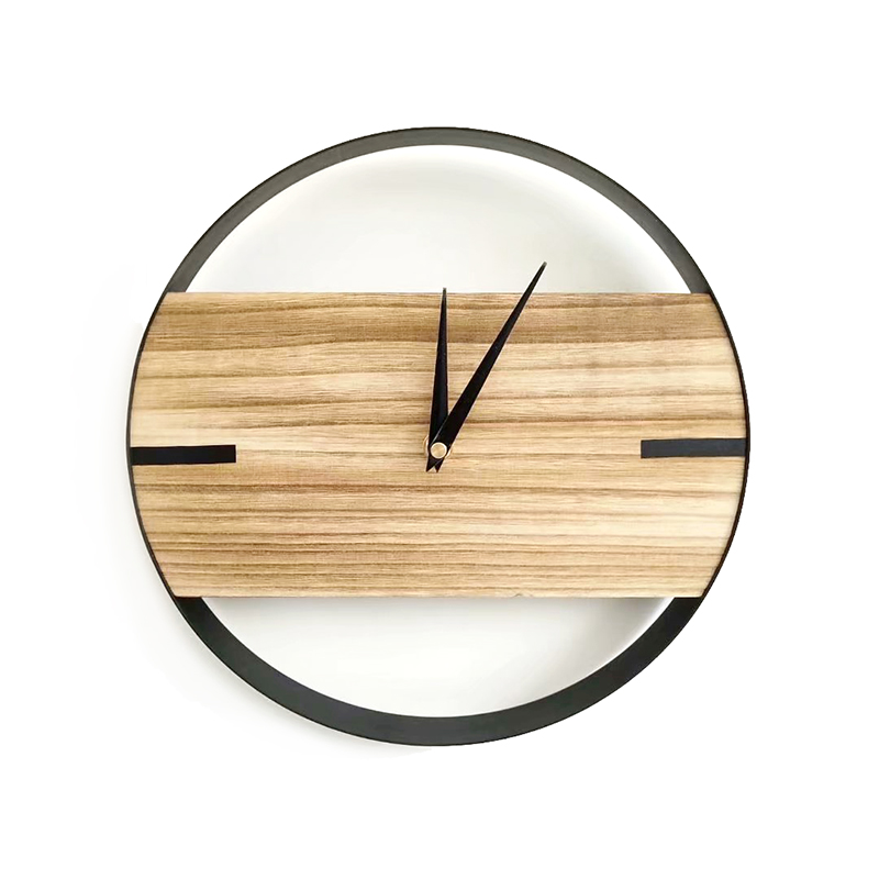 【小木挂钟】现代极简约圆形静音时钟客厅卧室玄关电视墙装饰