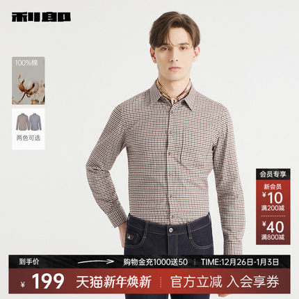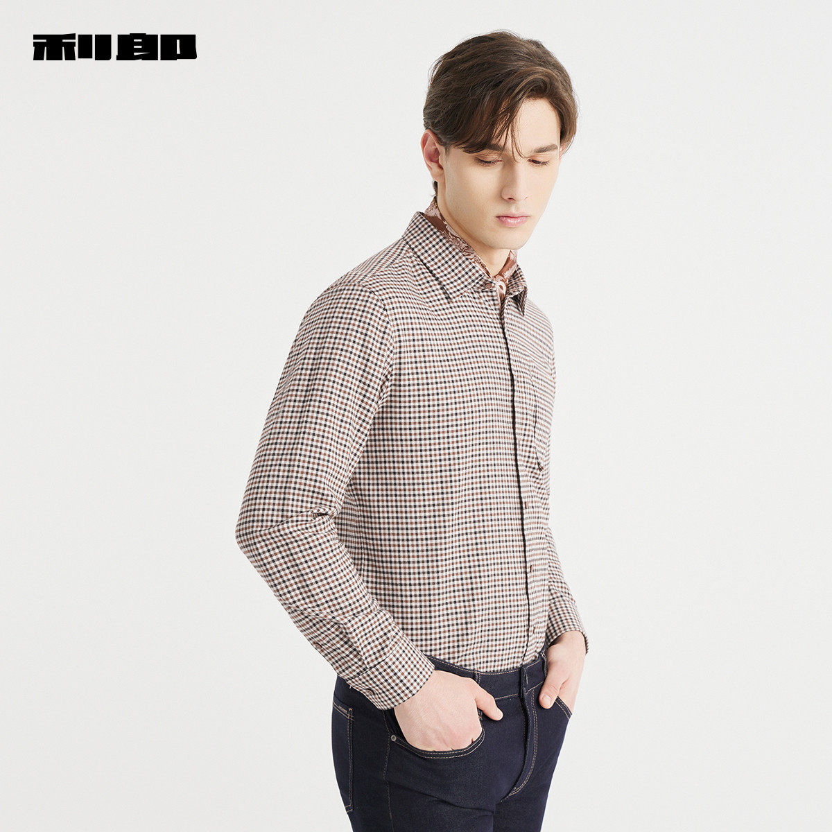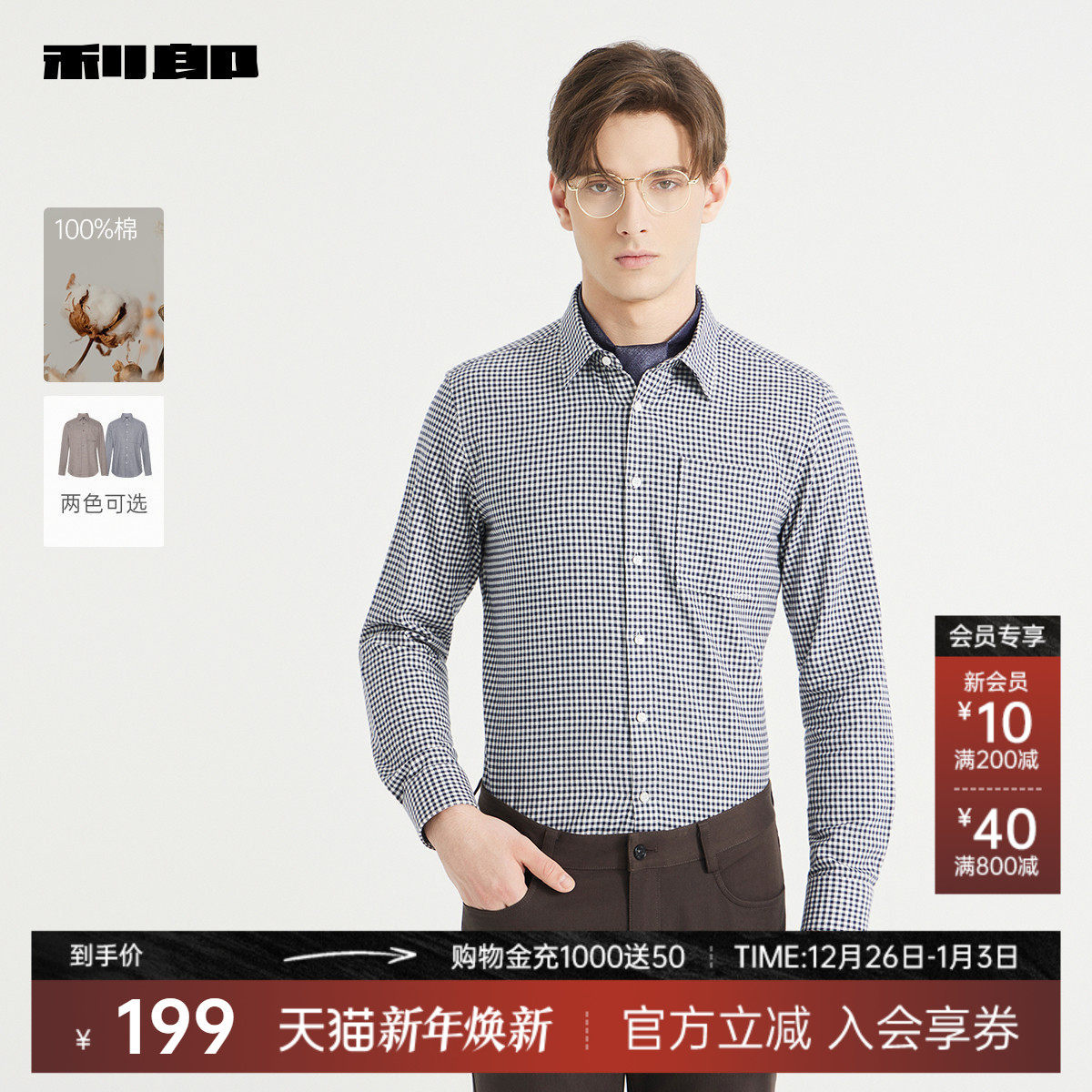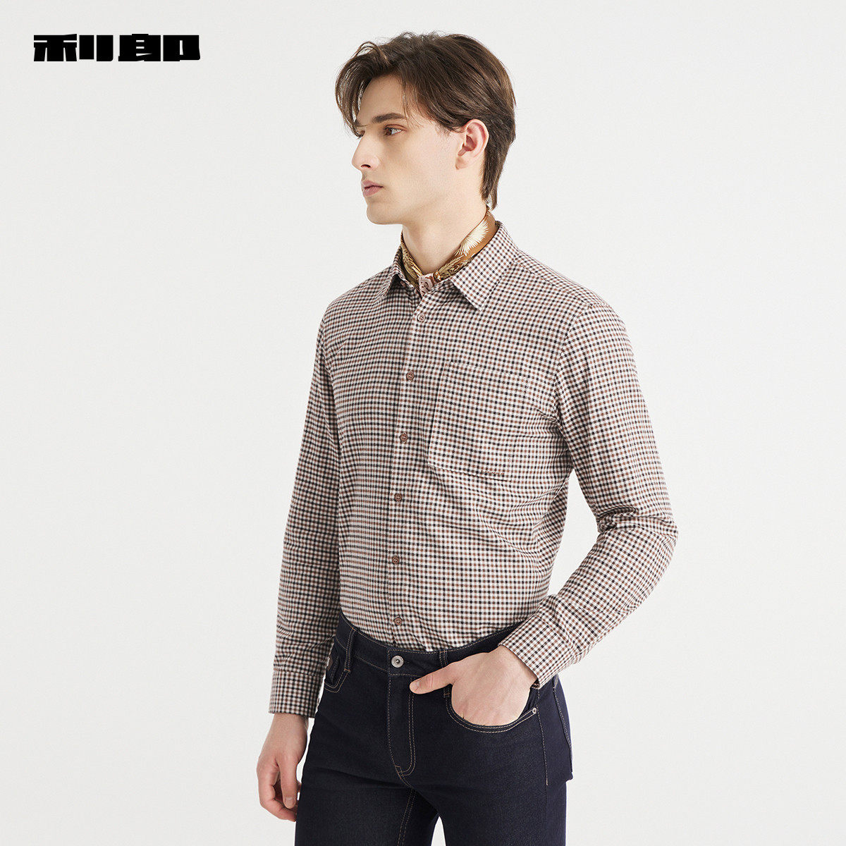 利郎官方 纯棉格子衬衫男士2025秋季新款商务休闲男装上班衬衣男