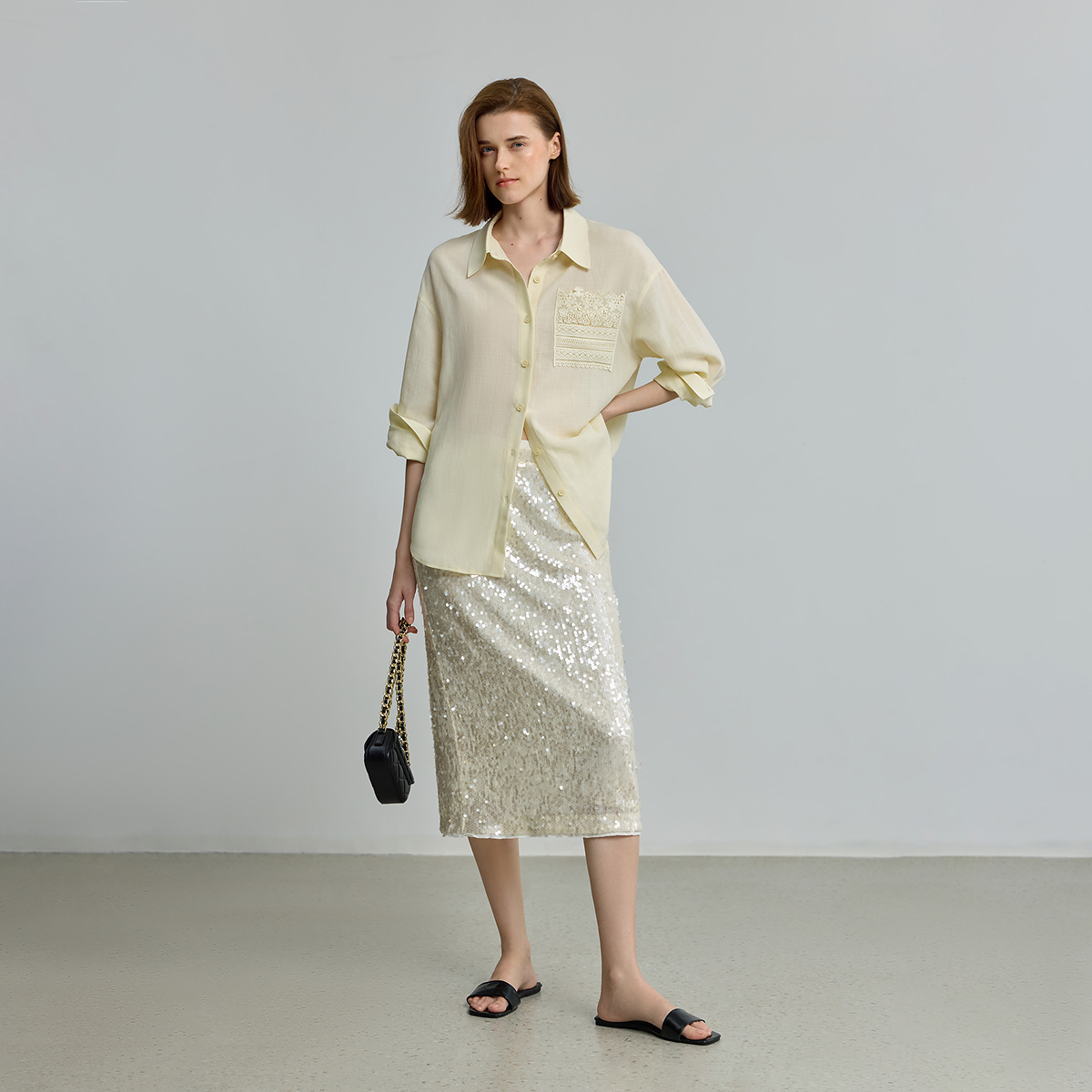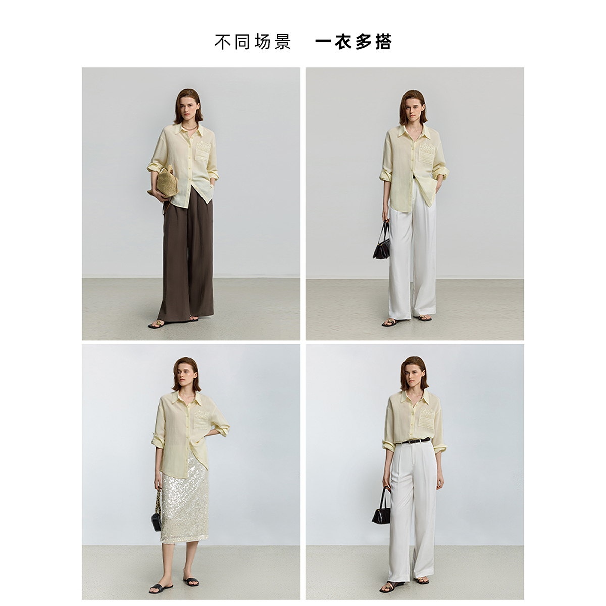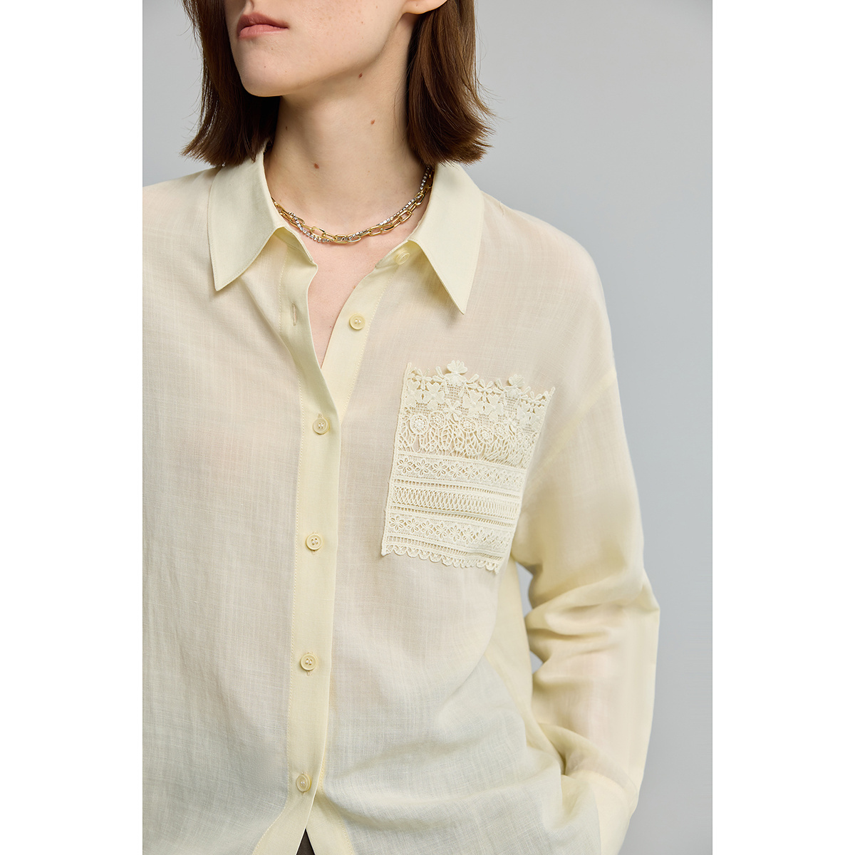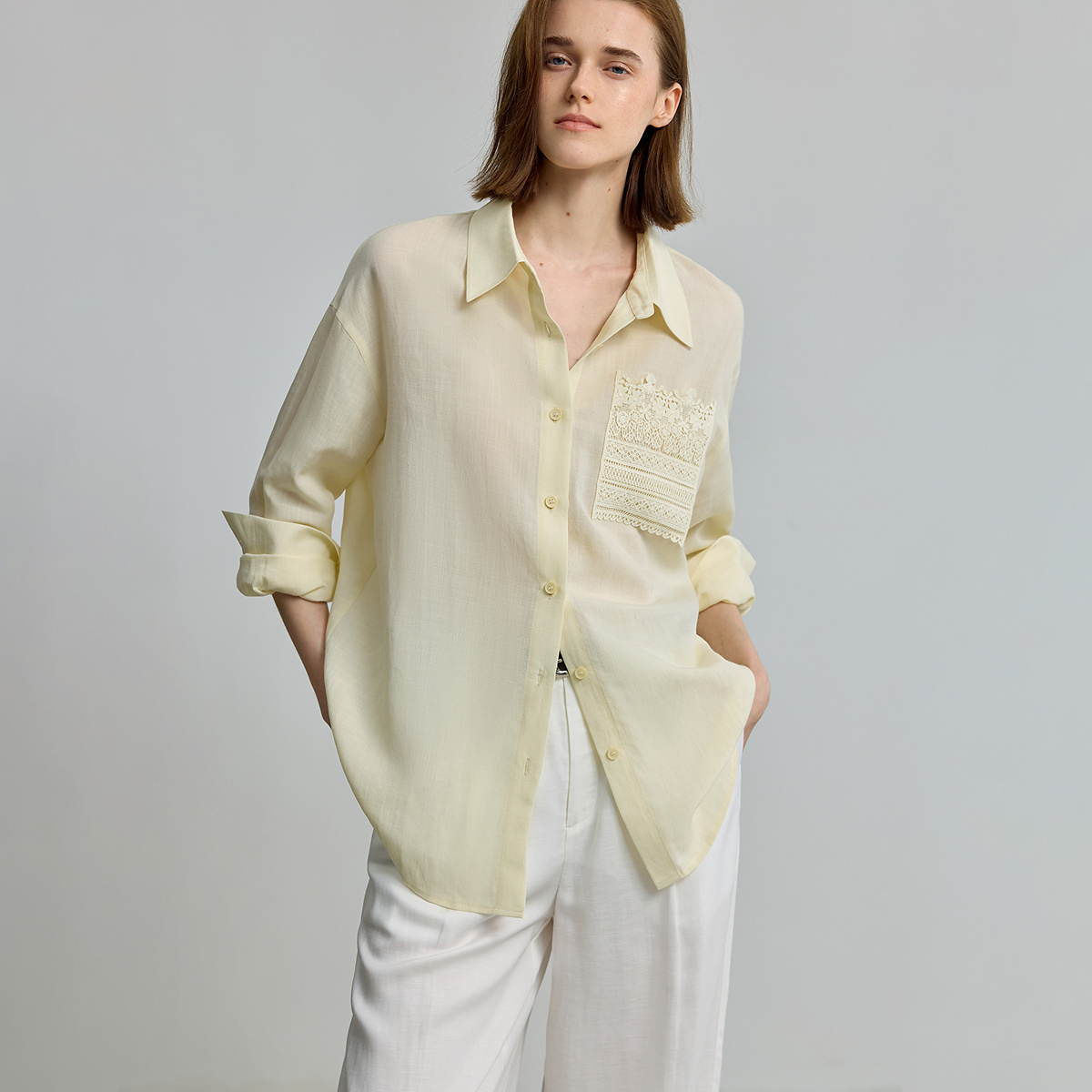 LILY2025夏新款女装莱赛尔苎麻镂空绣花宽松休闲翻领薄款衬衫外套