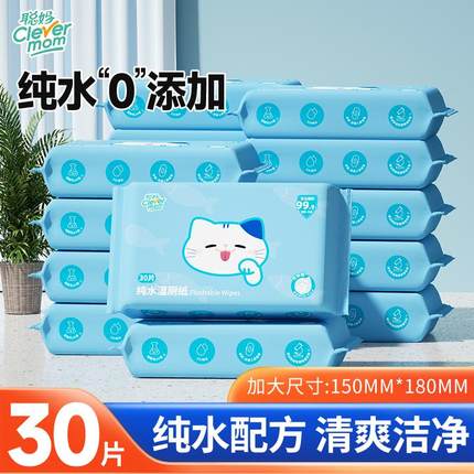 聪妈湿厕纸30抽家用实惠装湿巾擦屁屁厕所湿纸巾女士湿厕巾