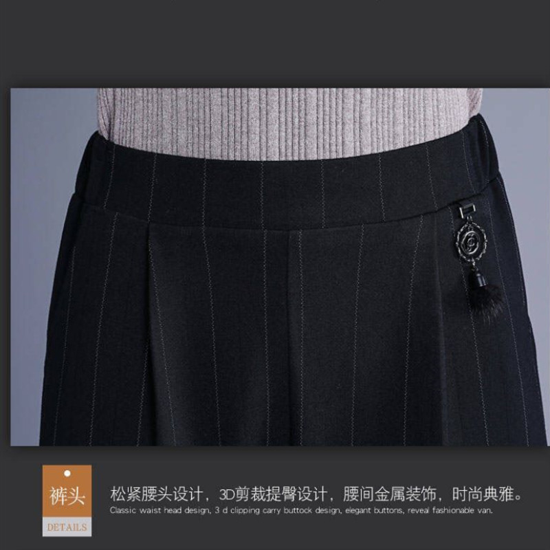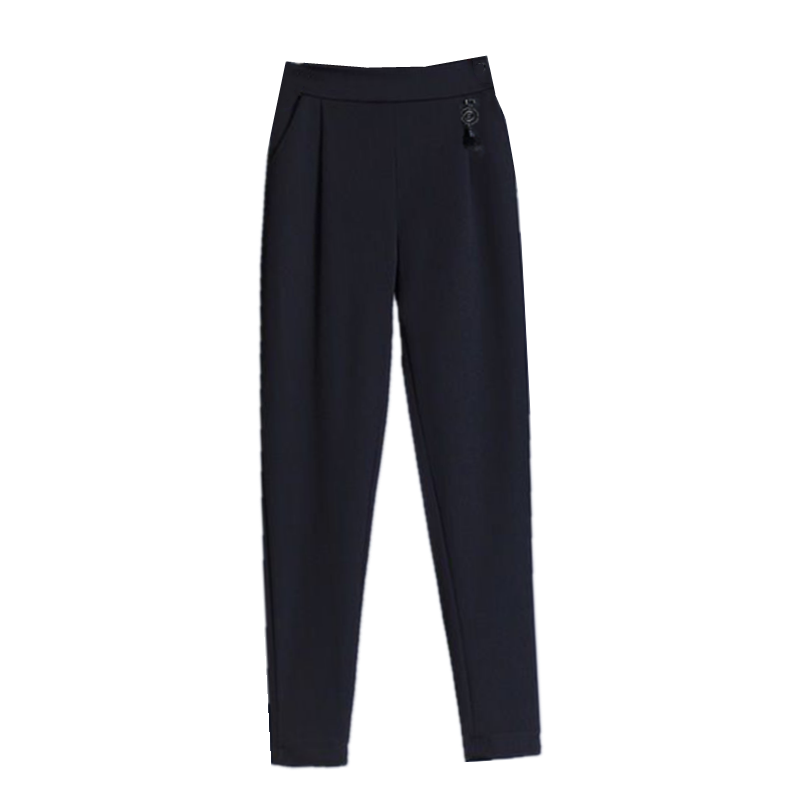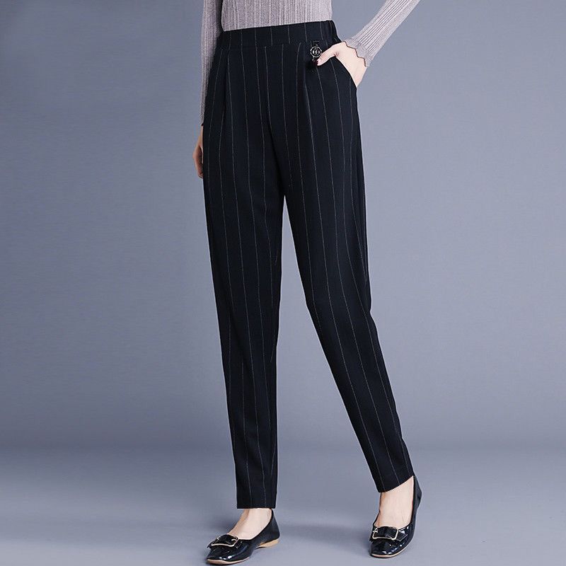 弹力休闲哈伦裤女2025春夏新款高腰宽松显瘦条纹时尚妈妈九分裤黑