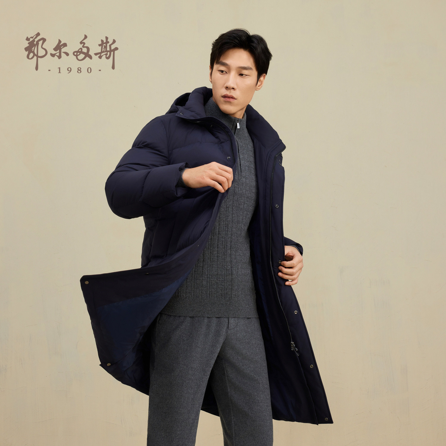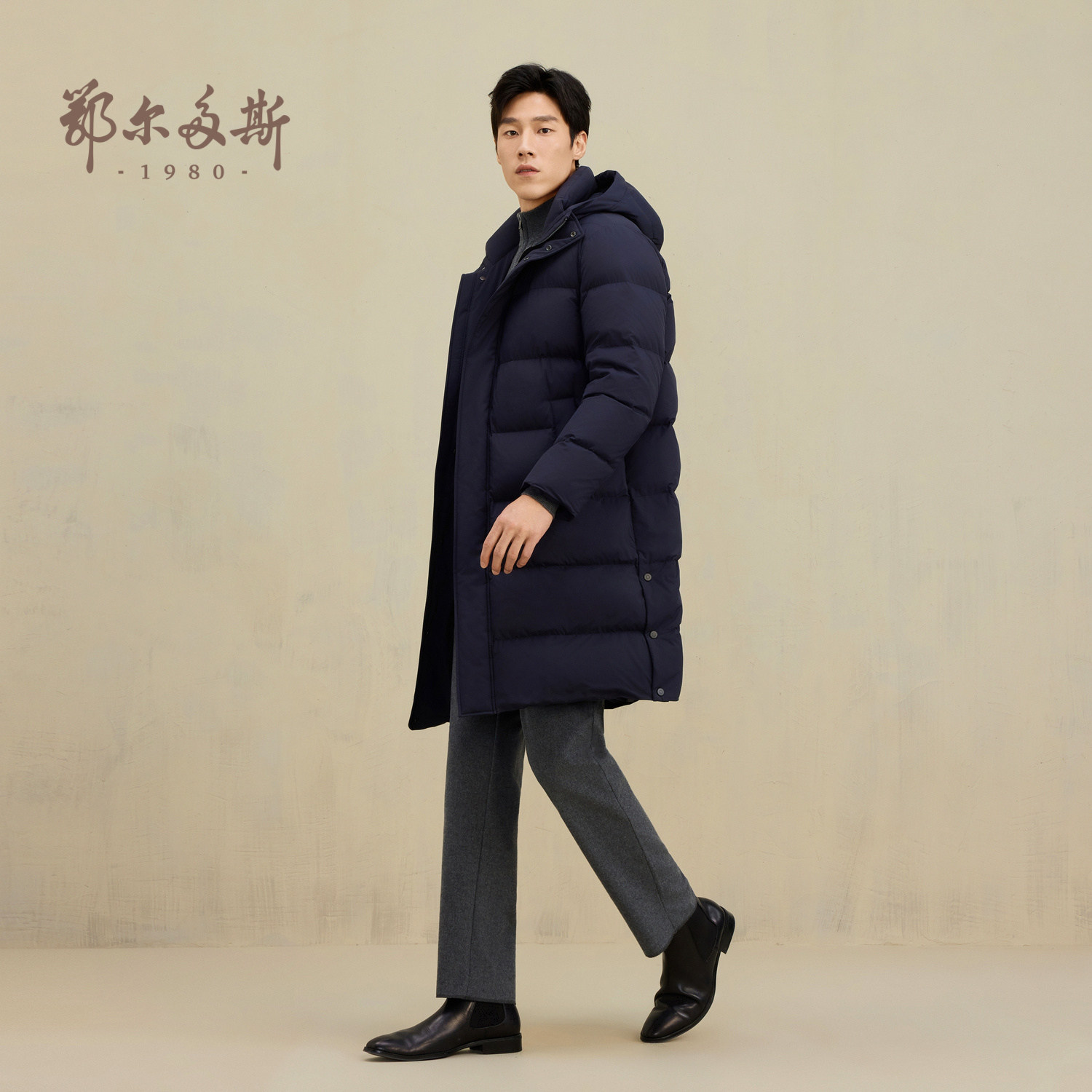 鄂尔多斯1980 白鸭绒羽绒服秋冬男士中长款加厚保暖外套