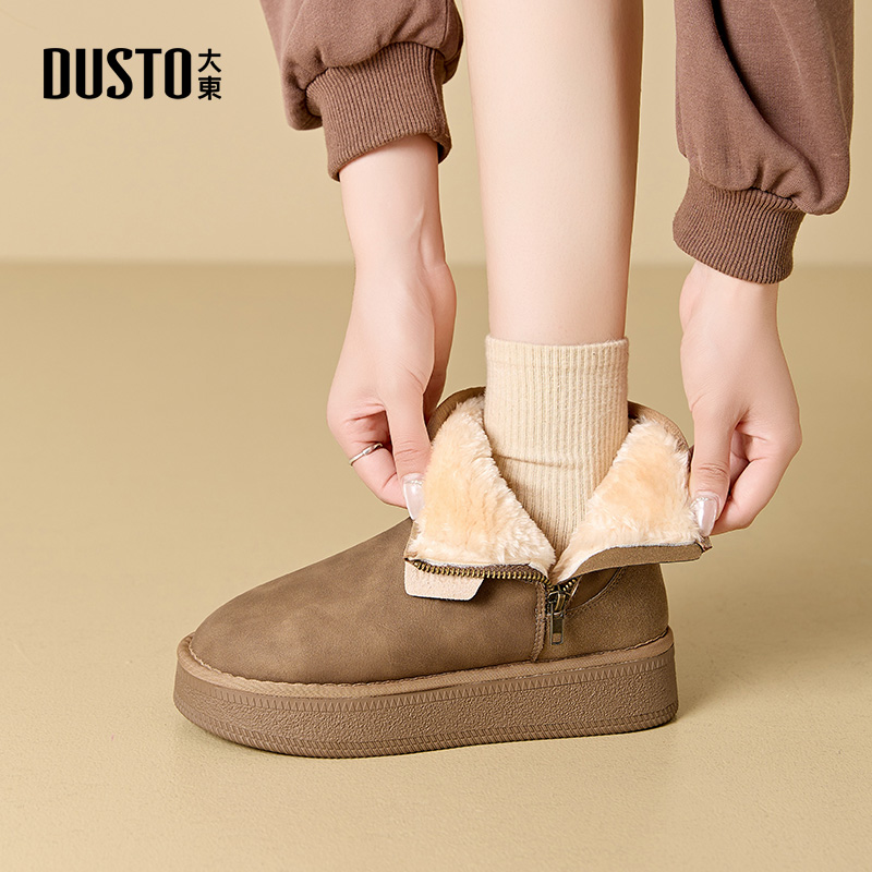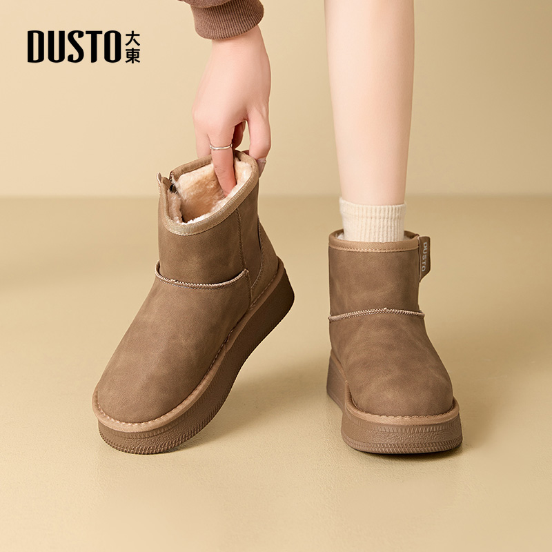 大东2025冬季新款女鞋舒适百搭时尚潮流雪地靴圆头长毛绒短筒女靴
