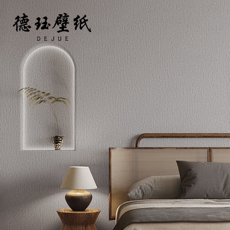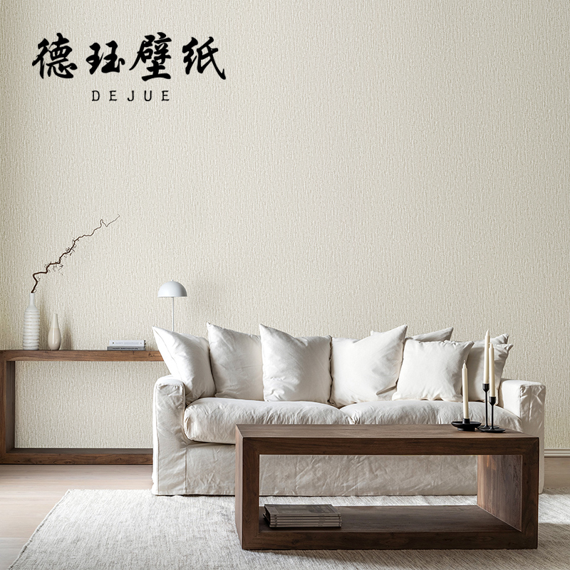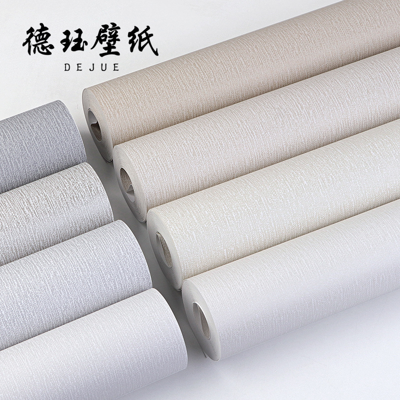 纯色素色不织布米色布纹亚麻壁纸客厅卧室奶咖色奶油风壁纸非自粘
