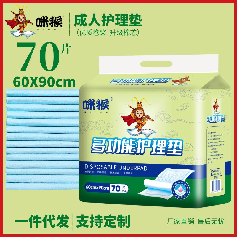 60x90加厚成人护理垫 咪猴男女老人隔尿垫70片绵柔干爽产孕妇护垫