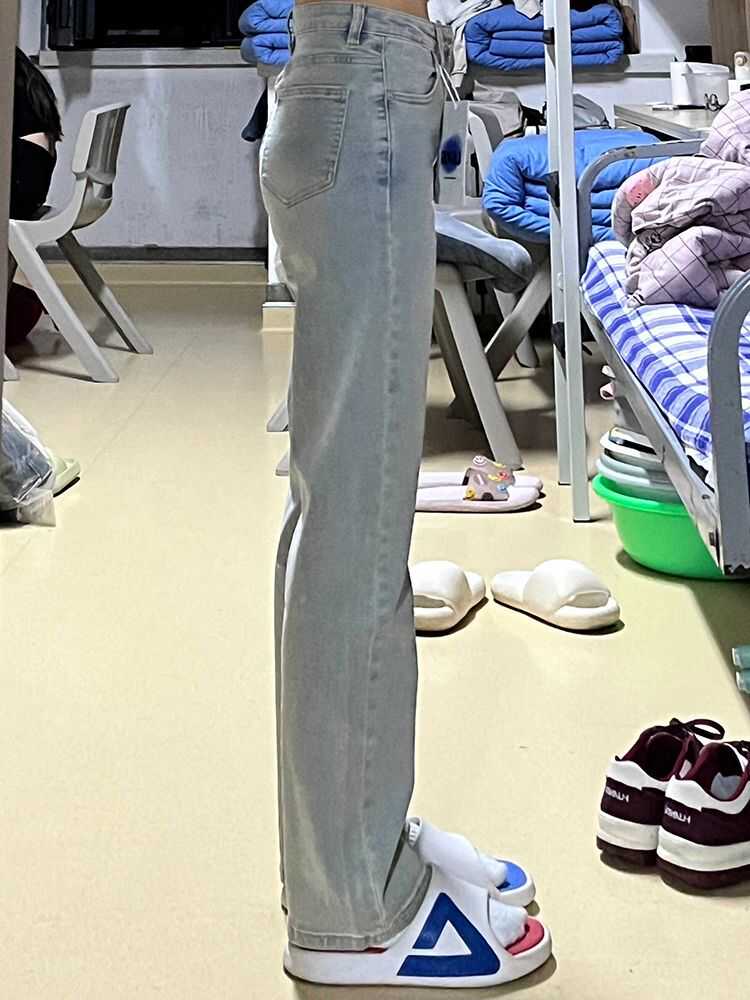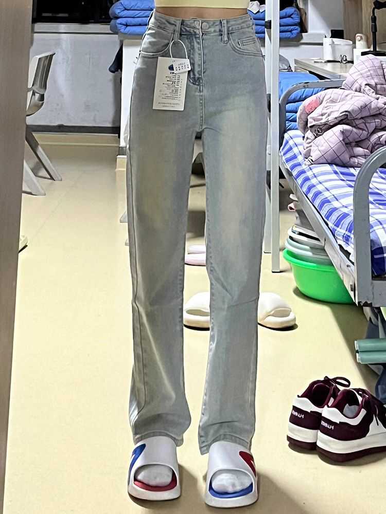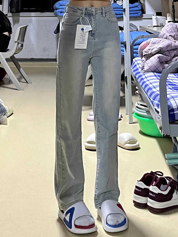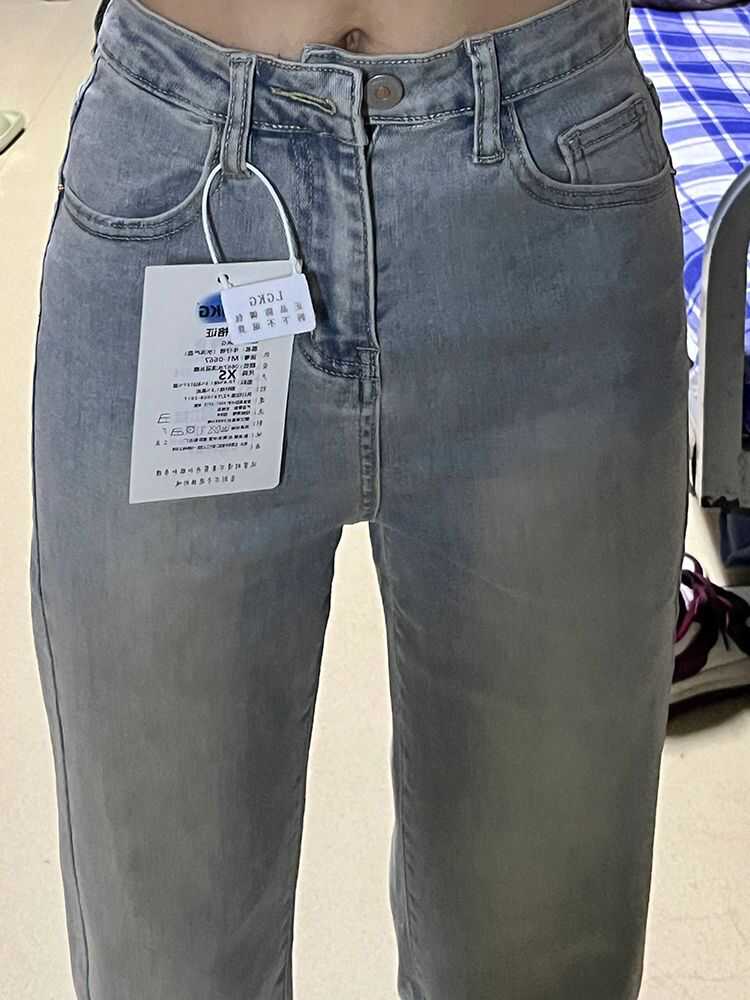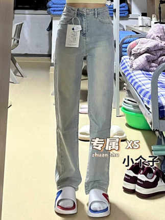 150XS码窄版直筒牛仔裤女个子水洗蓝弹力修身显瘦高腰烟管长裤潮