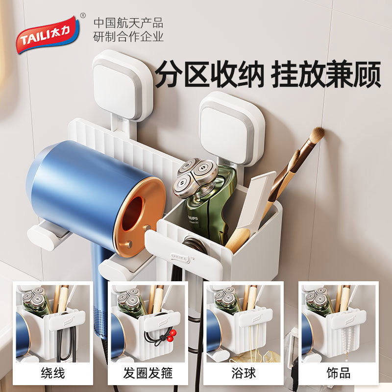 太力吹风机支架卫生间置物架子浴室吸盘免打孔风筒电吹风挂架