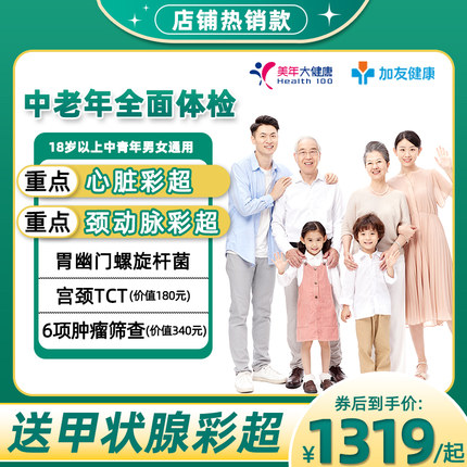 美年大健康瑞慈中老年体检套餐男女中青老年父母心脏彩超宫颈TCT