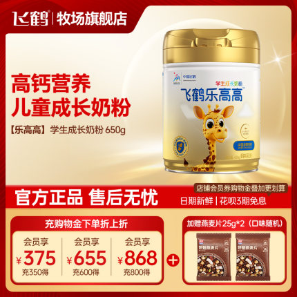 飞鹤乐高高学生成长奶粉青少年儿童营养高钙牛奶粉650g官方旗舰店