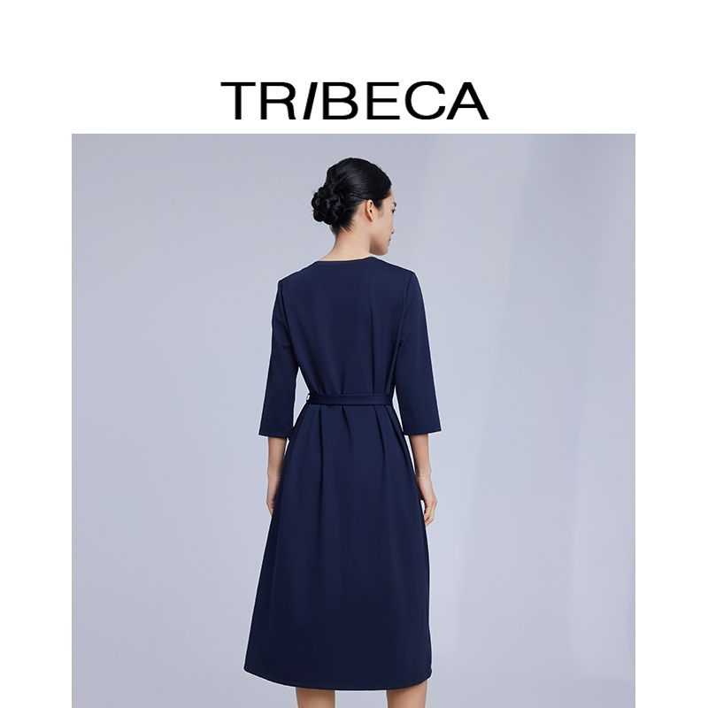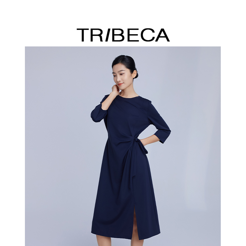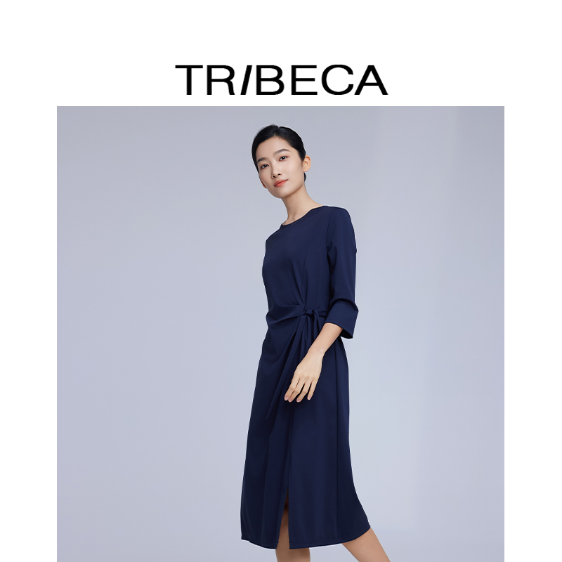TRIBECA翠贝卡2025年春季新款商场同款纯色休闲收腰显瘦连衣裙