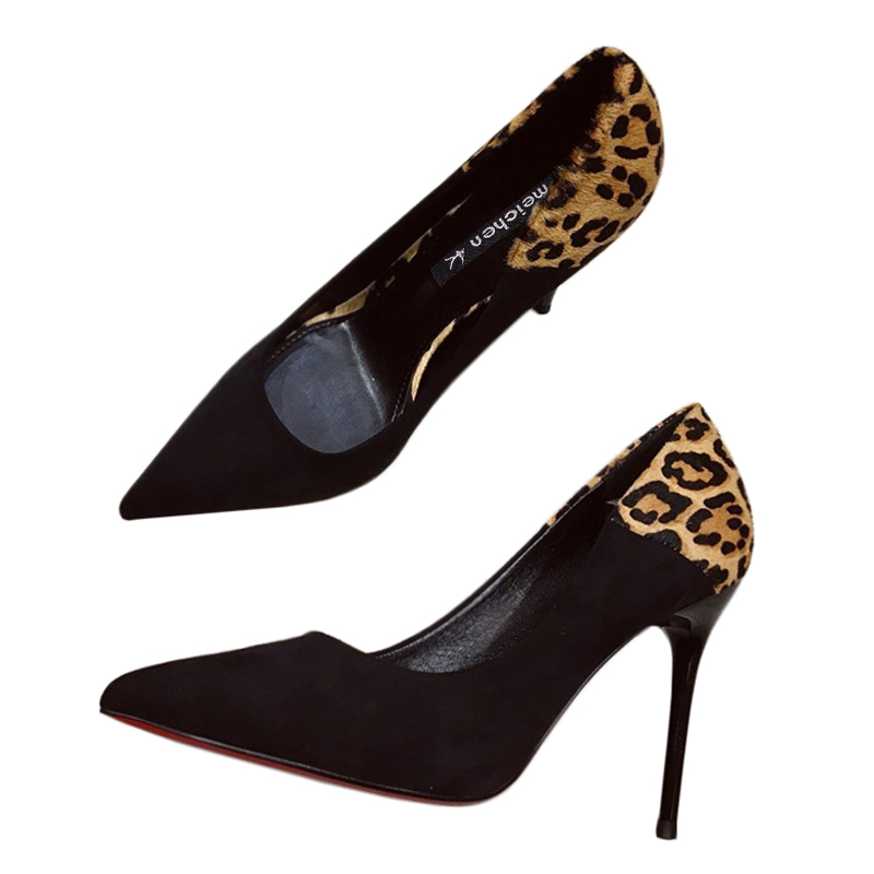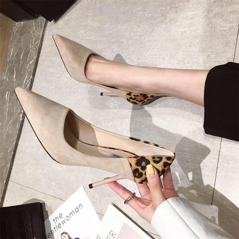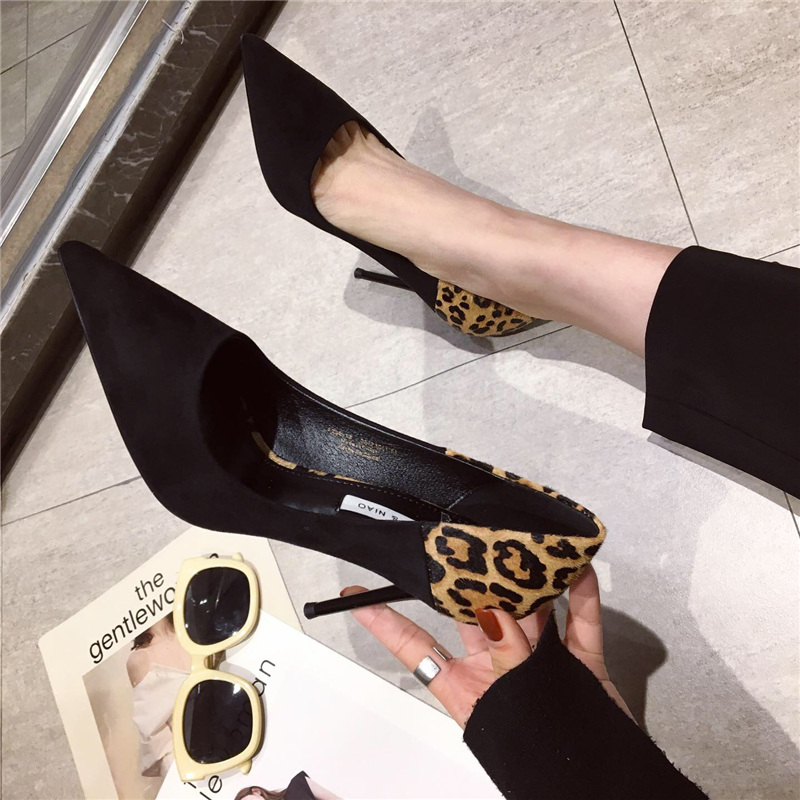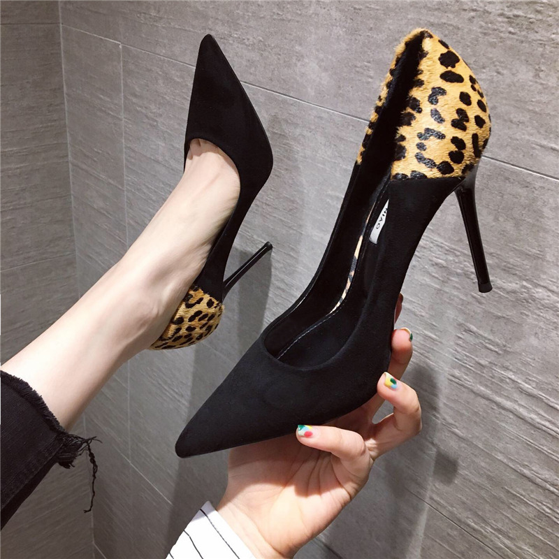 2025年春季新款豹纹网红法式少女高跟鞋女细跟尖头性感黑色单鞋夏