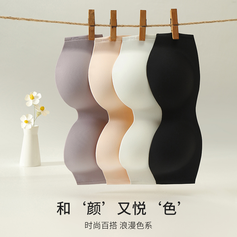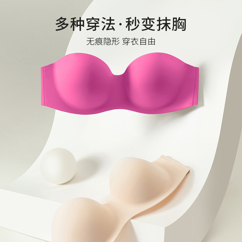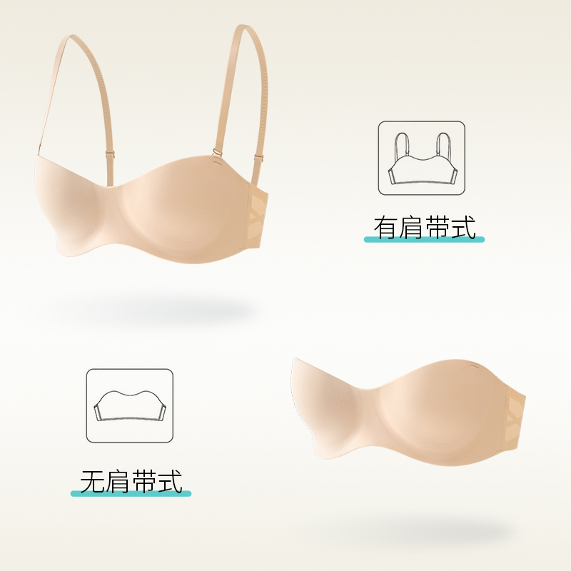 猫人无肩带内衣女一片式无痕防滑抹胸聚拢收副乳显大美背文胸夏季