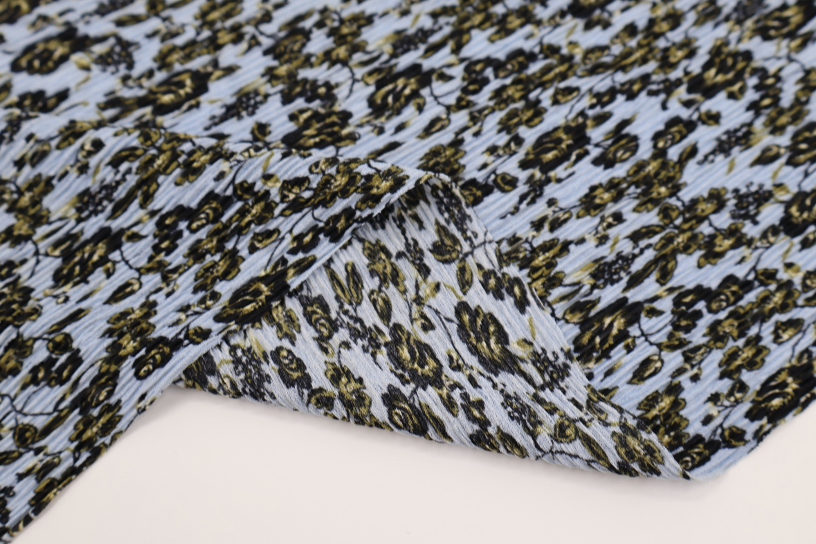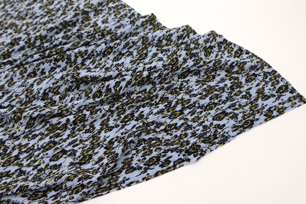 印花褶皱 巴洛克蓝色小碎花印花三宅一生弹力雪纺面料连衣裙布料