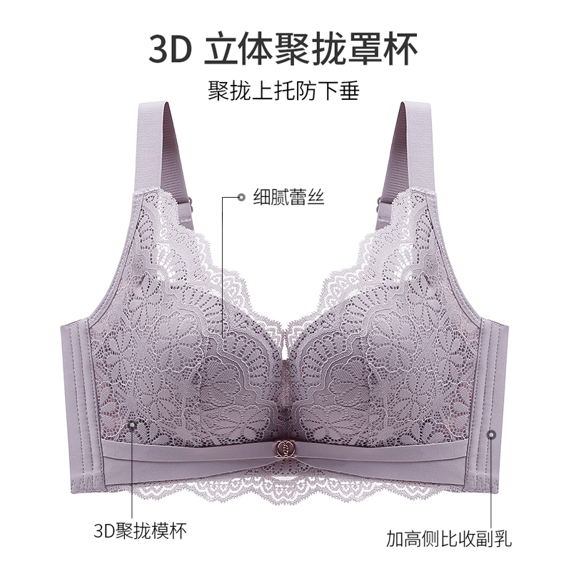 向大大内衣女夏小胸无痕聚拢无钢圈收副乳防下垂性感上托文胸薄款