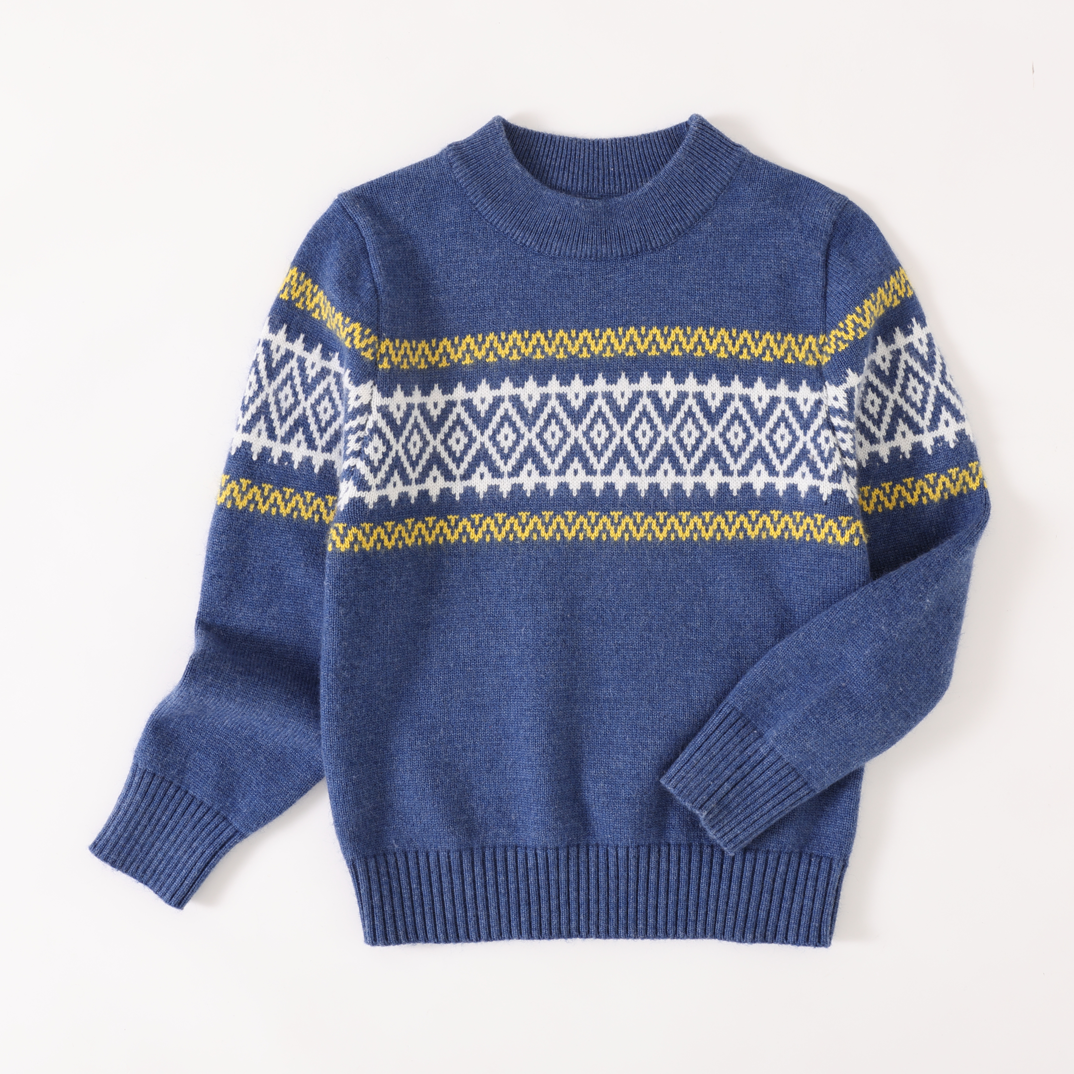 秋冬新款儿童羊绒衫男童保暖条纹毛衣套头圆领休闲男孩羊毛衫童装