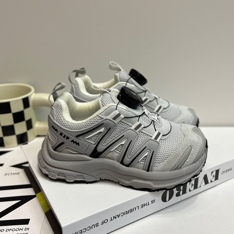超轻秋冬男童运动鞋网面旋转扣黑色鞋子儿童老爹鞋女童跑步鞋软底