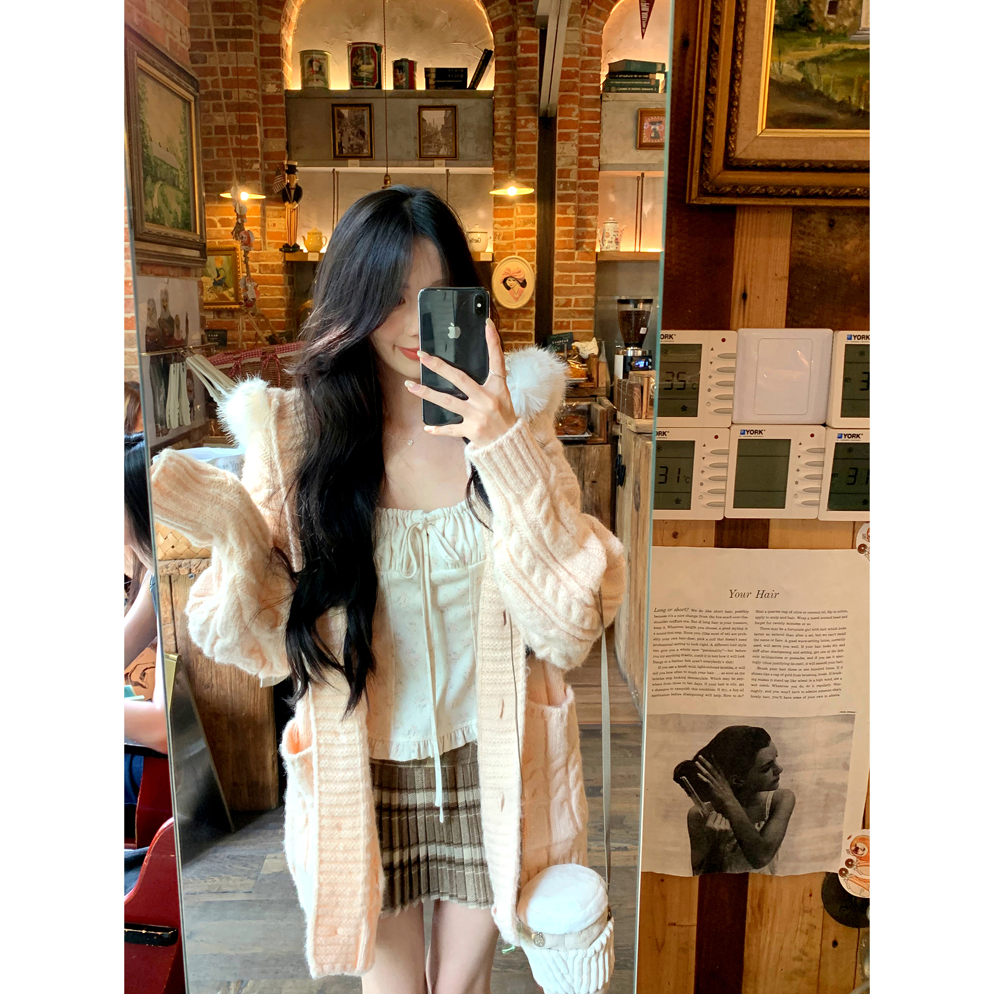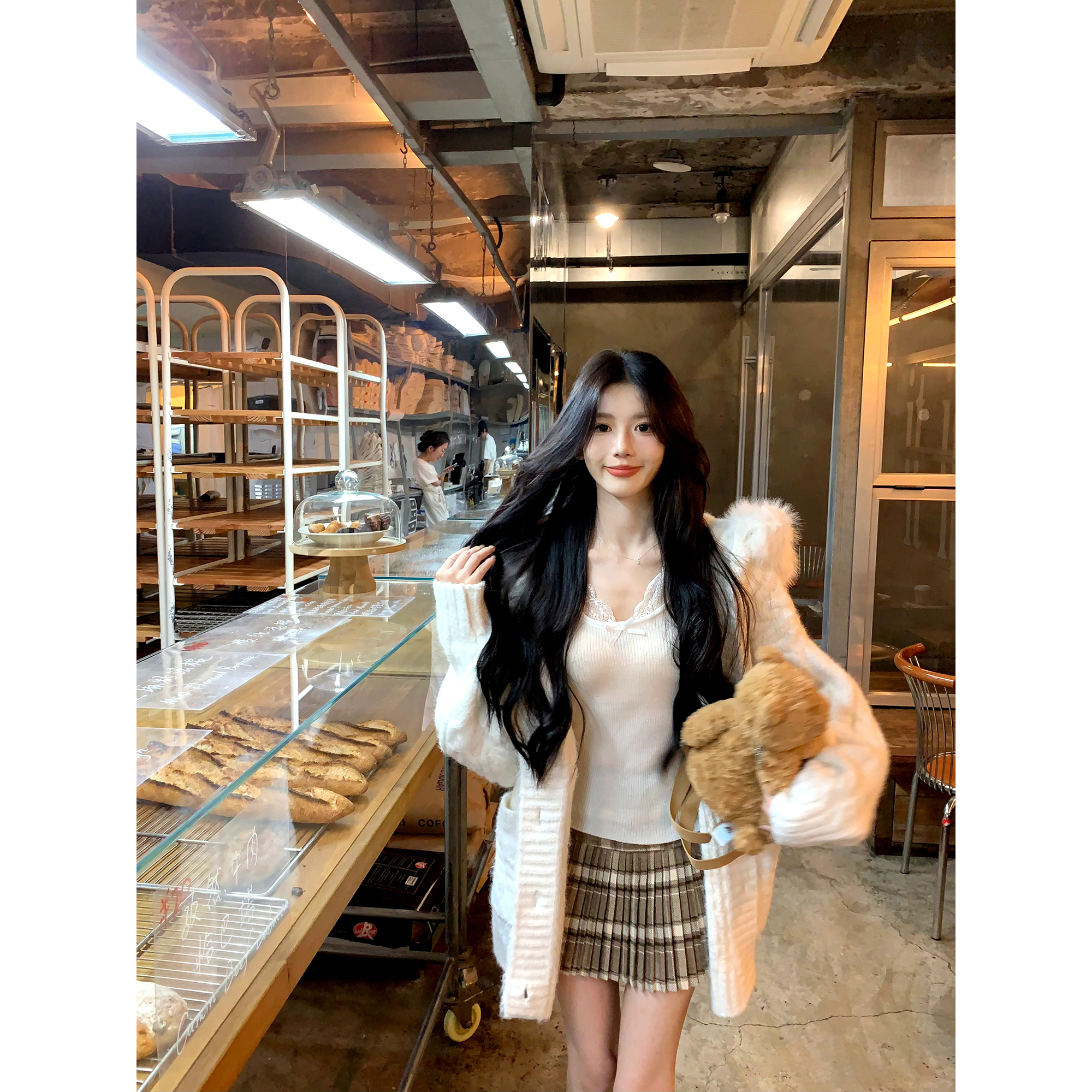一颗甜桃yikett《暖棕摩卡》秋季百褶格子毛呢半身裙女百搭短裙