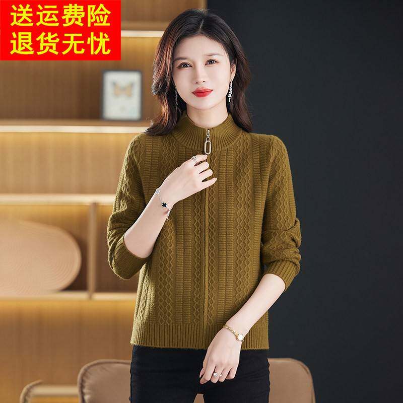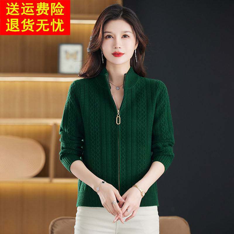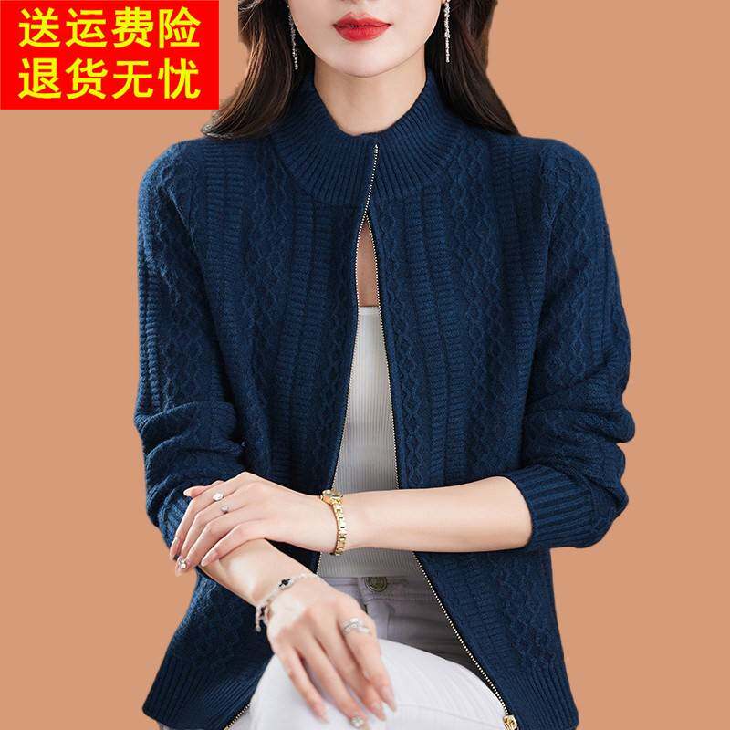 鄂尔多斯市羊毛衫女秋冬新款开衫拉炼立领时尚百搭毛针织羊绒外套