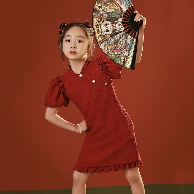 女童旗袍连衣裙夏装洋气中大童复古风公主裙小女孩演出潮服表演裙
